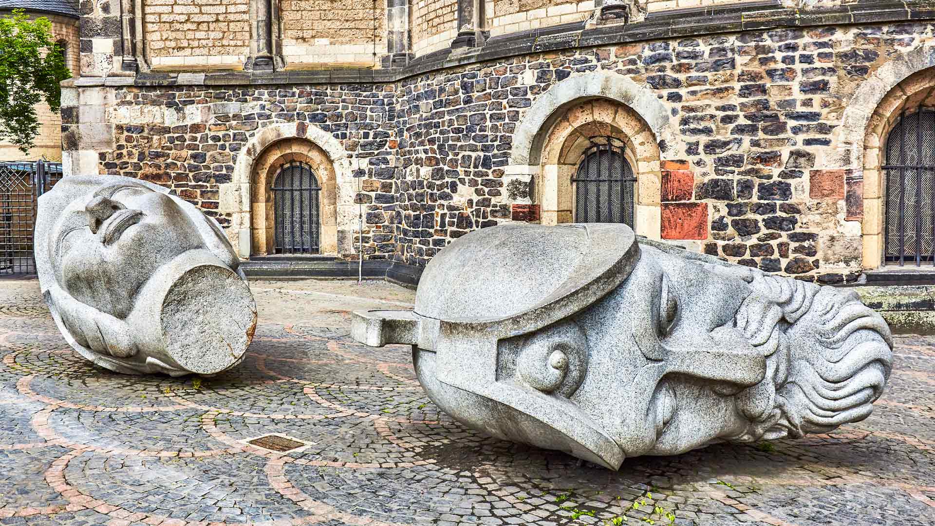 Köpfe des Heiligen Cassius und Florentius vor dem Bonner Münster, Bonn