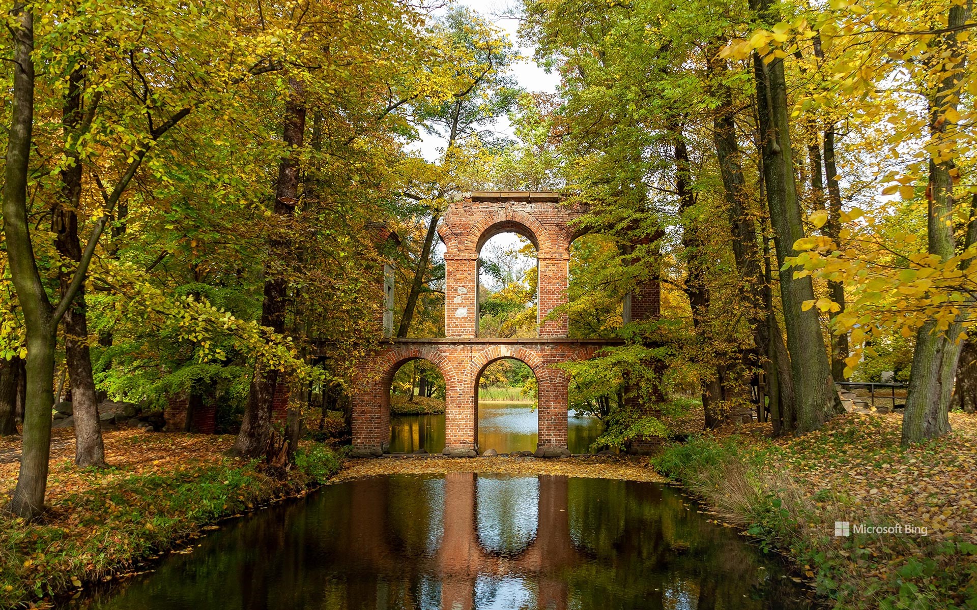 Der Arkadia-Park, gestaltet von der polnischen Aristokratin Helena Radziwiłłowa im Jahre 1778, ist ein englischer Landschaftspark, der sich in der Nähe von Warschau in Polen befindet. Dieser Park repräsentiert eine Mischung aus Architektur und Landschaften, die an die Epochen der Antike und des Mittelalters erinnern. Ein Beispiel dafür ist die Replik eines römischen Aquädukts.