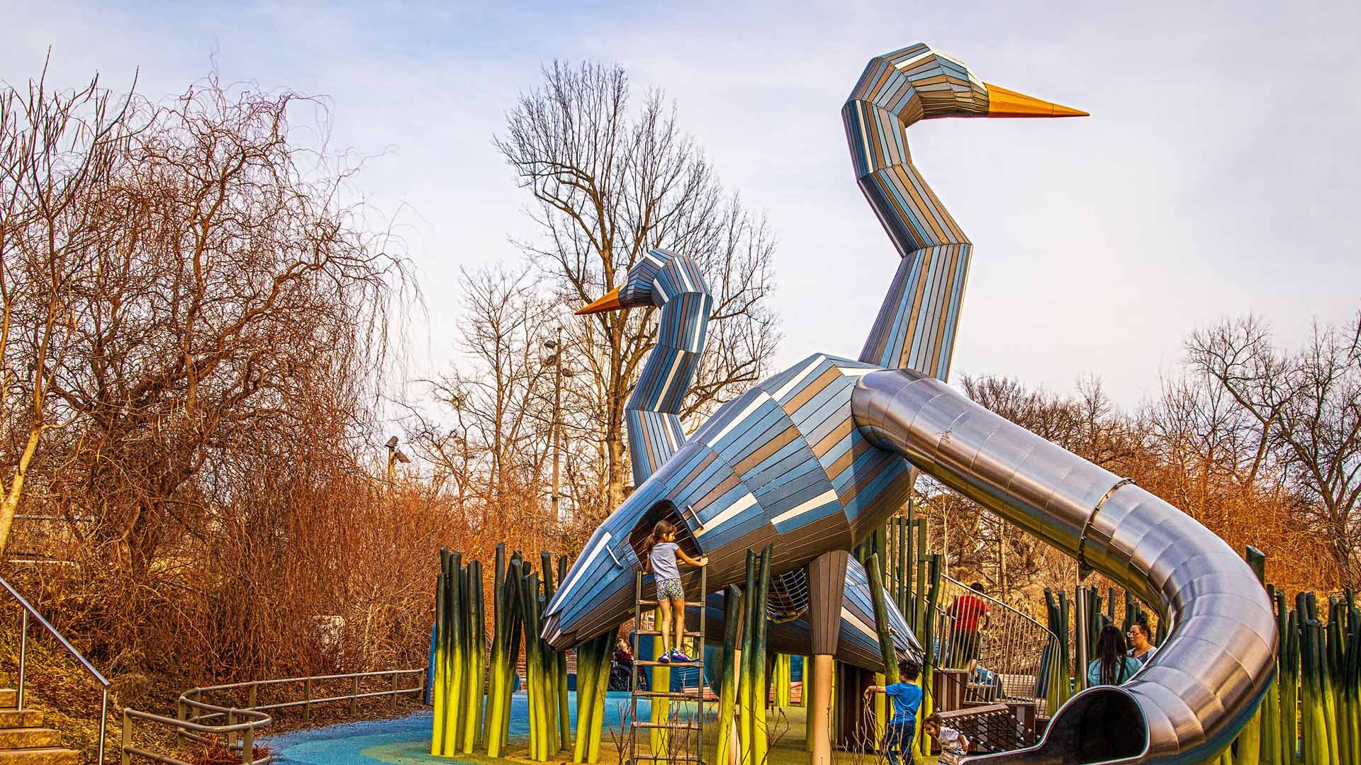 Kinder verdienen Schutz, Bildung, Nahrung und einen Platz zum Spielen. Der von der George Kaiser Family Foundation errichtete Gathering Place in Tulsa, Oklahoma, bietet eine Kombination aus üppigen Grünflächen, originellen Spielplätzen und malerischen Wanderwegen - ein wahres Wunderland für Kinder! Dieser Abenteuerspielplatz bietet Kindern die Möglichkeit, eine andere Welt zu entdecken, zu lernen und ihrer Fantasie freien Lauf zu lassen. Mit seinem kreativen Design, dem verrückten Layout, dem Tunnelpuzzle, den hohen Baumhäusern und den verschlungenen Rutschen ist er wahrlich ein Paradies für Kinder!