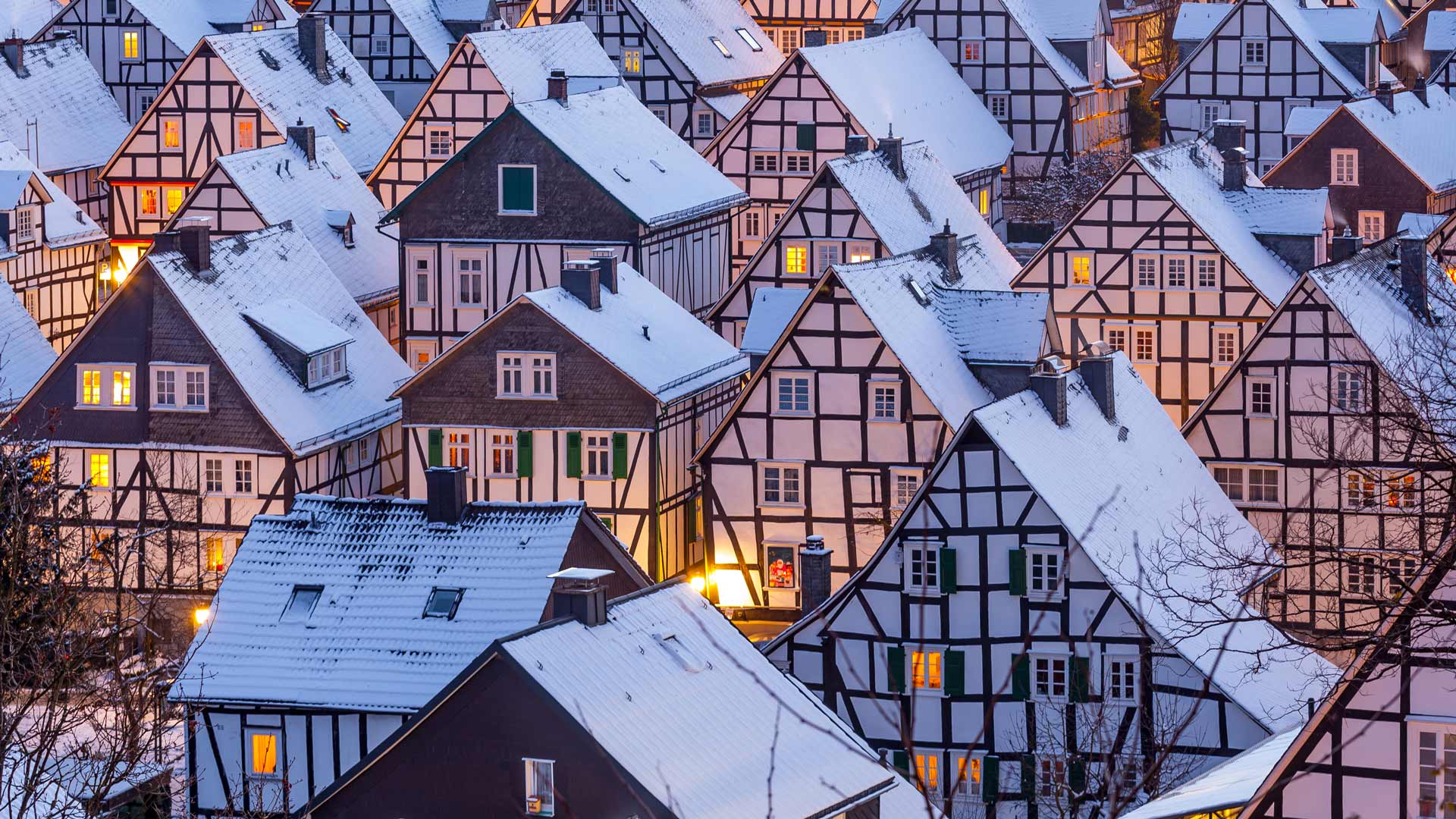 Verschneite Fachwerkhäuser in Freudenberg bei Siegen, Nordrhein-Westfalen (© Thorsten Frisch/Shutterstock)
