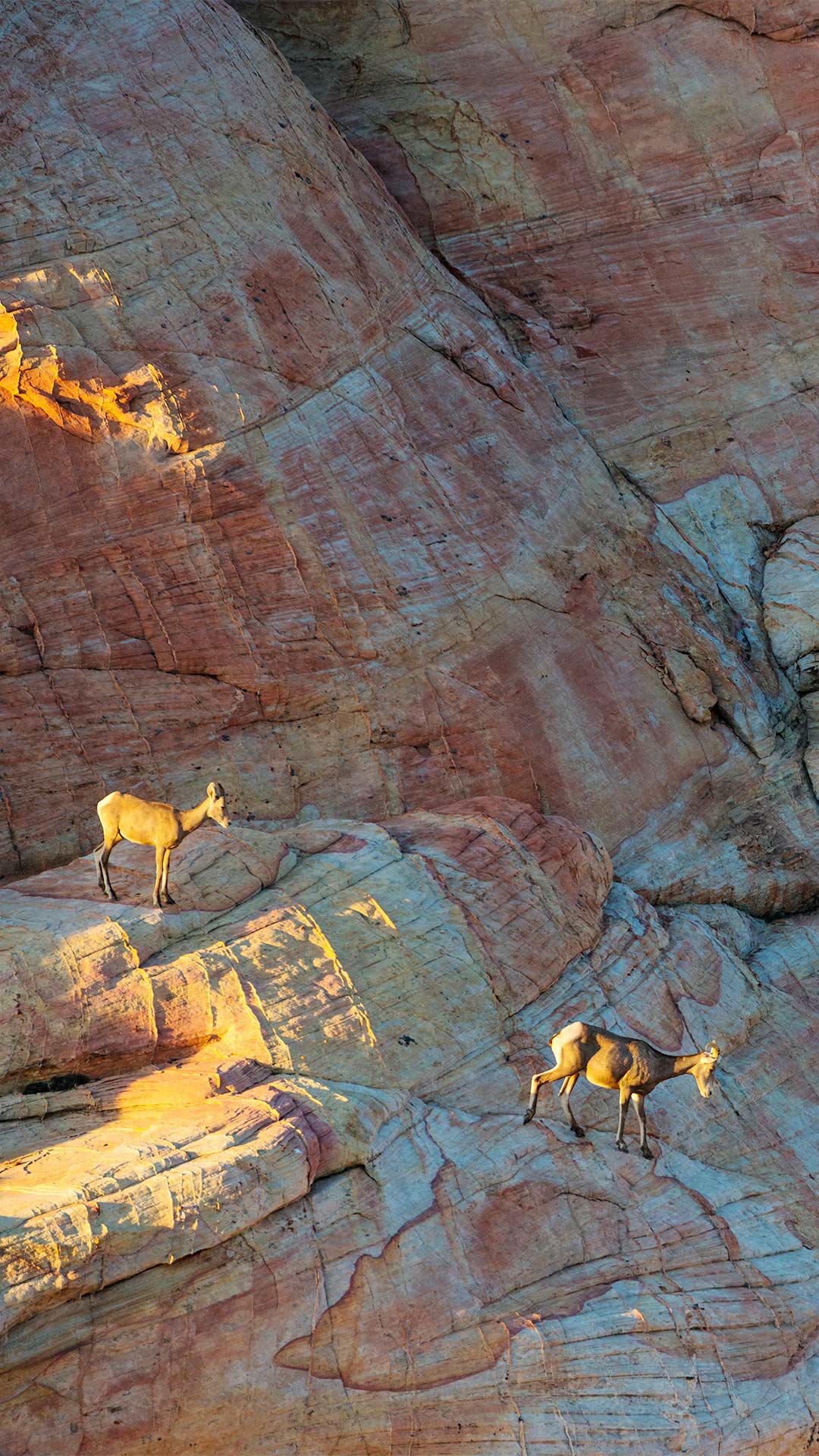 Wüsten-Dickhornschafe im Valley of Fire State Park, Nevada, USA
