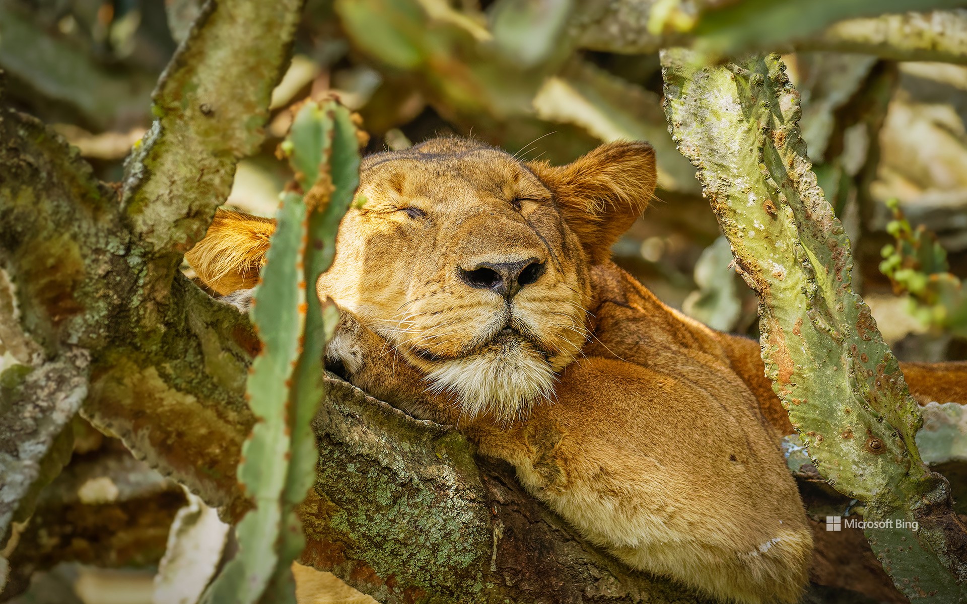 Auf dem heutigen Bild ruht ein majestätischer Löwe friedlich im Queen-Elizabeth-Nationalpark in Uganda. Dieser Park, einer der meistbesuchten des Landes, ist berühmt für seine Biodiversität und beeindruckenden Landschaften. Die Löwen, bekannt als die „Könige der Savanne“, können bis zu 20 Stunden am Tag schlafen, um Energie für die Jagd zu sparen. Außerdem sind sie die einzigen Katzen, die in Gruppen leben, die als Rudel bekannt sind und normalerweise von einem oder mehreren Männchen geführt werden, deren Hauptaufgabe es ist, das Territorium zu schützen.