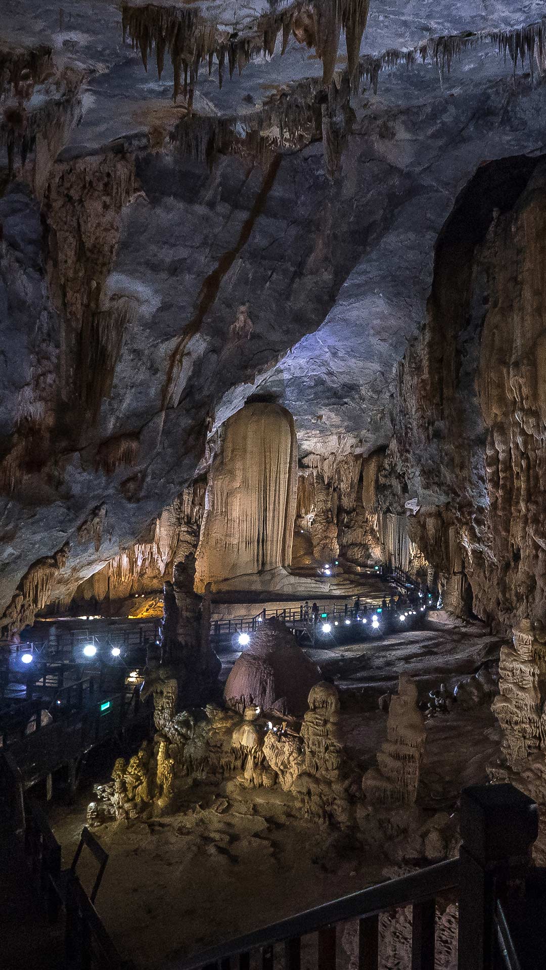 Die Paradise Cave (auch „Paradieshöhle“) im Nationalpark Phong Nha‑Ke Bang beeindruckt bereits nach den ersten Schritten. Die weitläufige Kalksteinhöhle liegt tief in Zentralvietnam in einer Landschaft aus schroffen Bergen und verborgenen Karstkammern. Mit einer Länge von rund 31 Kilometern zählt sie zu den längsten trockenen Höhlen Asiens – diese Dimensionen sind sofort spürbar. Über den Wegen öffnen sich mächtige Hallen, während die Wände über Millionen von Jahren gewachsenen Tropfsteinstrukturen geprägt sind.