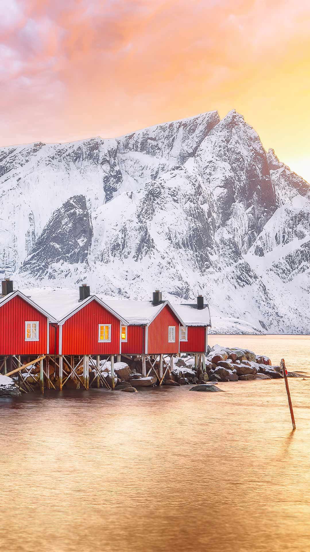 Traditional red fishermen's cabins on the shore of Reinefjorden, Norway (© Pilat666/Getty Images)