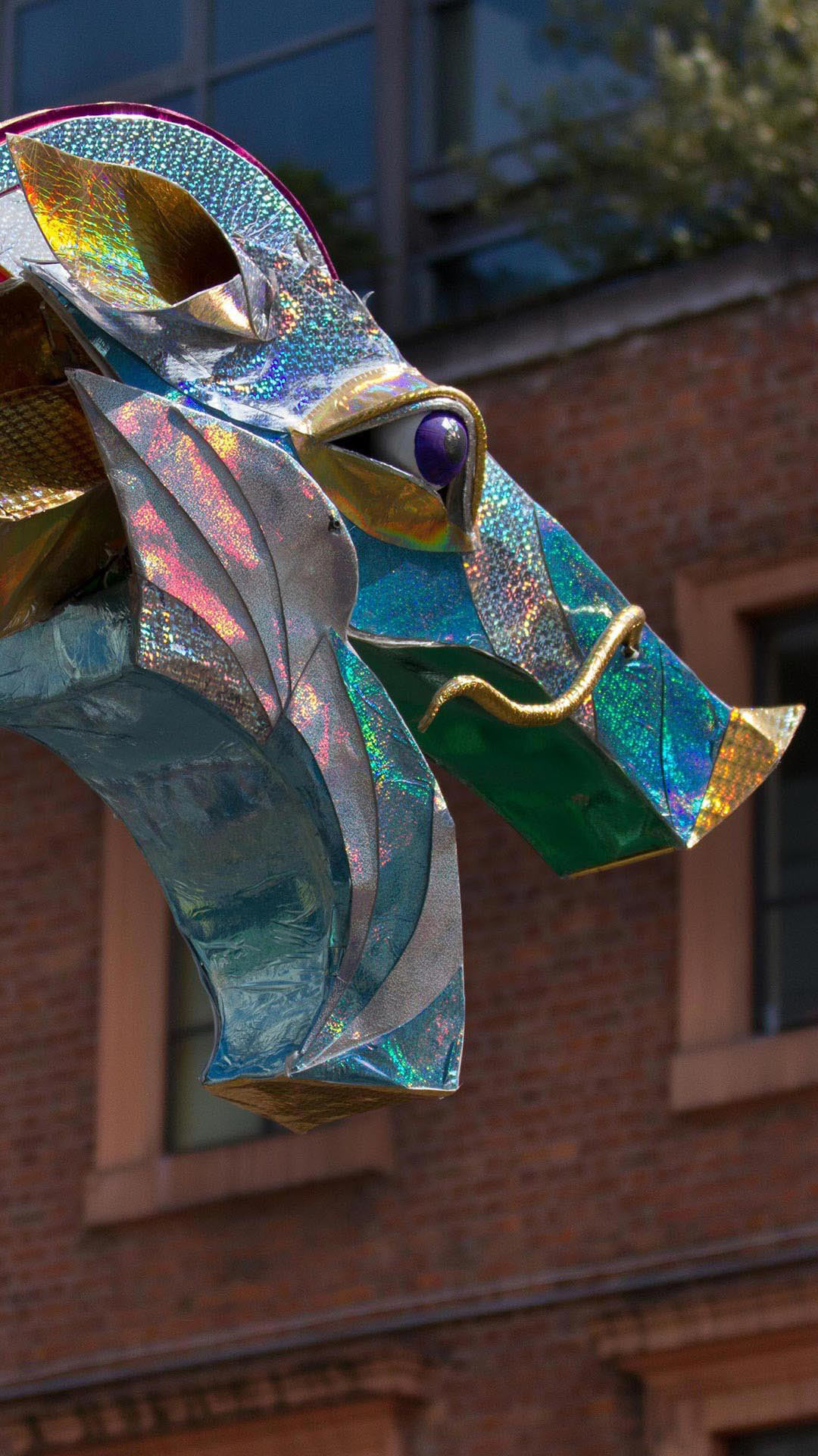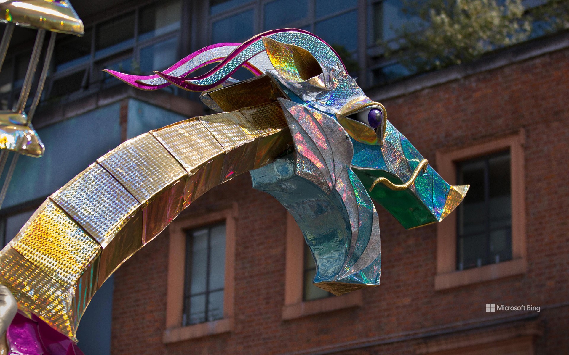 Pictured here is a towering mechanical dragon from the day's weekend celebrations. This is connected to the legend of Saint George defeating a fearsome dragon. According to the story, a village was terrified by a dragon demanding tribute. When the local princess was chosen as the next sacrifice, Saint George encountered her on her way to the beast's lair. Despite her warnings to flee, he bravely faced the dragon, vanquished it and saved the day.