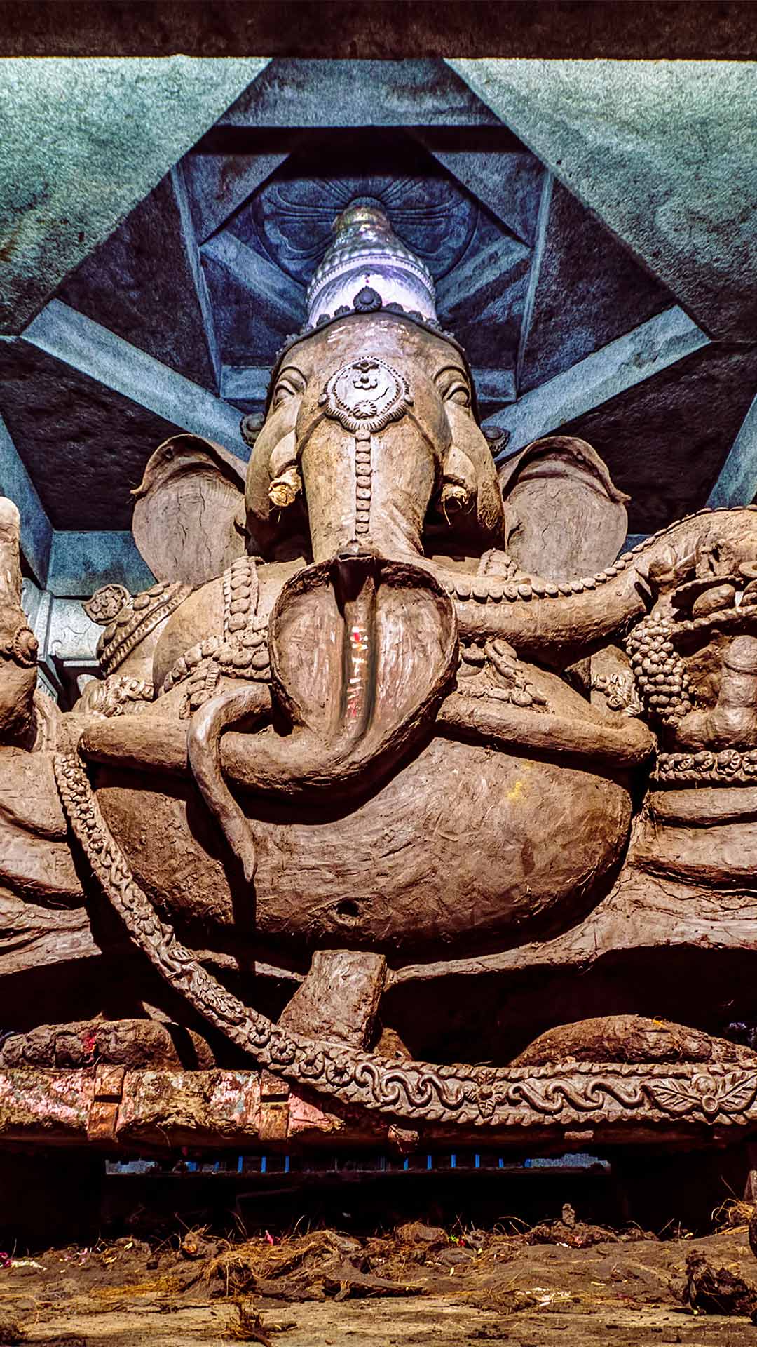 In recent years, growing environmental awareness has influenced how the festival is observed. Many people now opt for eco-friendly idols made from a mixture of cow dung and clay, like the one featured here. Instead of immersing the murtis in natural water bodies, some families allow them to disintegrate in a barrel of water at home, later using the dissolved clay to nourish their gardens. In some cities, public immersion points have also adopted eco-conscious practices to reduce environmental impact.