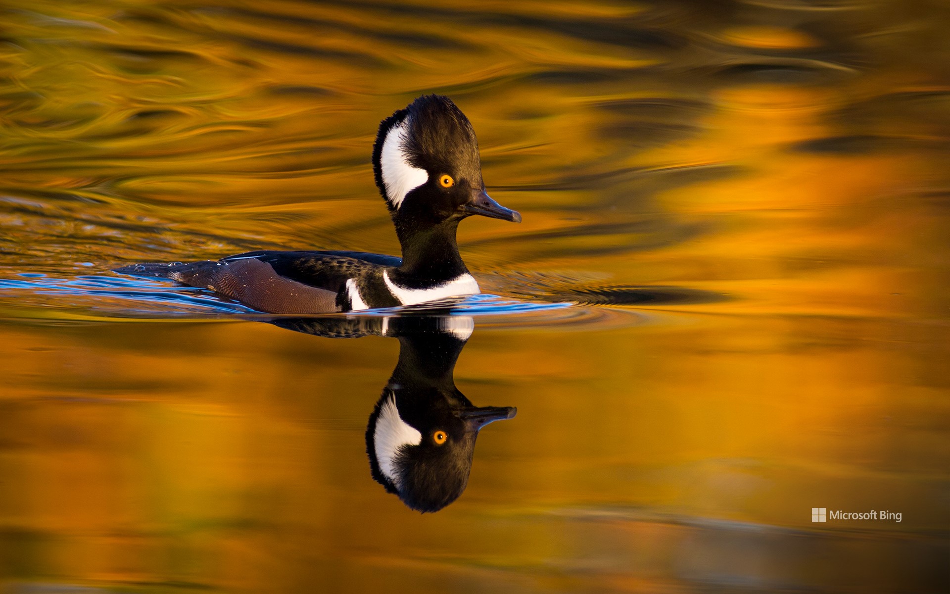 Each autumn, the quiet waterways of Oregon, United States, become seasonal waypoints for hooded mergansers—small diving ducks native to North America. They are agile divers, plunging beneath the surface to catch fish and other prey. Males, known as drakes, stand out with their fan-shaped white crests, dark heads and chestnut-brown sides, while females, called hens, are brownish grey with smaller crests. Oregon's lakes and wetlands provide sheltered feeding grounds as these birds migrate or winter across the continent.