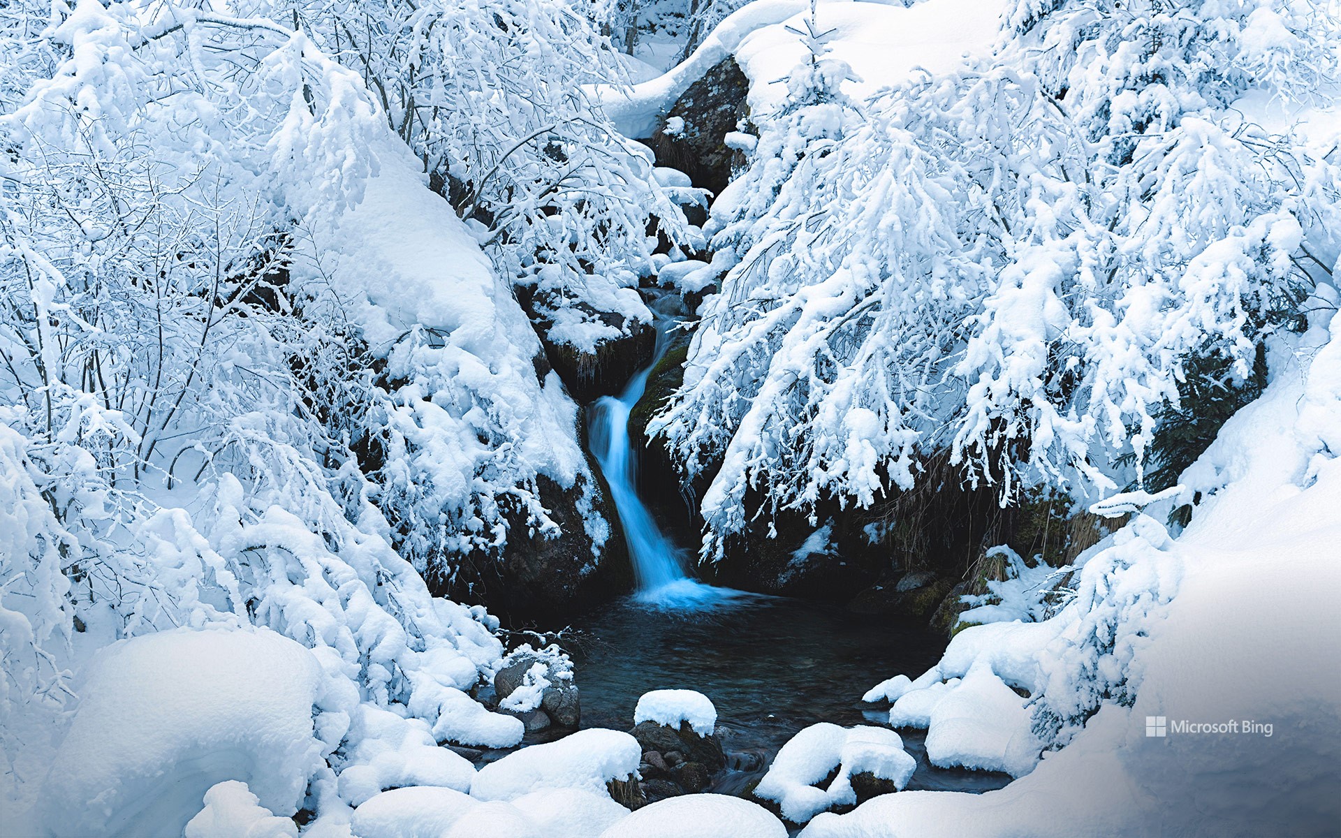 Here, every sound becomes rarer, more precious. The wind brushes the trees like fingers on taut strings, and the snow falls slowly, as if time itself had chosen to slow down. Amid the white folds of the valley, a small waterfall resists the frost, continuing to flow, to speak. Ice surrounds it, grips it, but does not stop it. It is like a voice that refuses to be silenced, a breath that carries through the season.