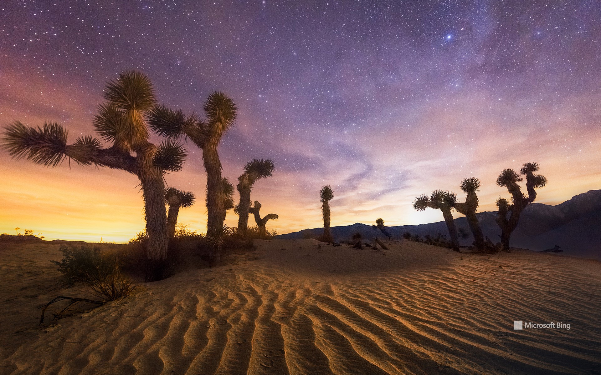 Happy anniversary, Joshua Tree National Park! This Californian icon was made a national monument on August 10, 1936. At the meeting point of the Mojave and Colorado Deserts, it has been home to various cultures for thousands of years. Its earliest known residents were people from the Pinto Culture, who lived here from 8000 to 4000 BCE. Centuries later, this land was inhabited by the native Cahuilla, Serrano, and Chemehuevi peoples. Its namesake, the Joshua tree, has also put down roots across this 1,242-square-mile park. This striking plant, pictured on our homepage, is not really a tree, but rather a kind of succulent. Native to the Southwest US and northern Mexico, Joshua trees can grow up to 40 feet tall.