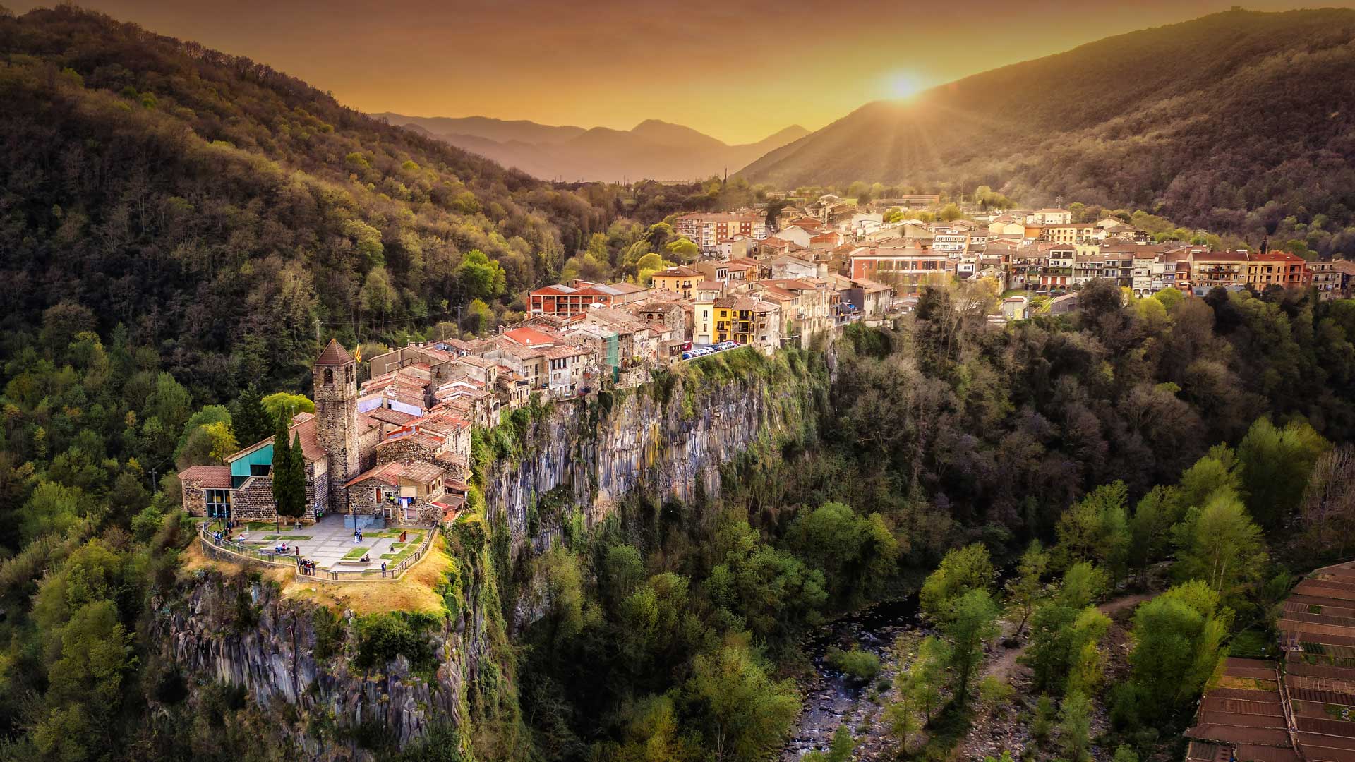 Perched on the edge of a basalt cliff, a town peers at the river running below. Today's image takes us to Castellfollit de la Roca in the Catalonia region of northeastern Spain. This town isn't for the faint-hearted: there's a 49-metre drop down to the Toronell and Fluvia Rivers, which converge at the base of the cliff. Many of the buildings, which are made of the same basalt that the town stands on, seem to teeter on the edge of the precipice. Pictured at the end of the crag is the 13th-century church of Sant Salvador.