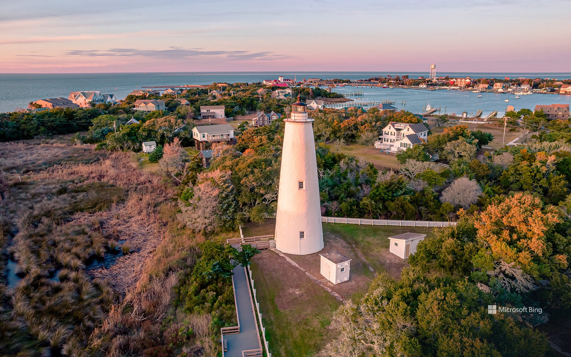 Welcome to Ocracoke Island in the Outer Banks of North Carolina, United States. This is a place where history and nature intertwine. This secluded island, reachable only by ferry or small plane, offers 25 kilometres of untouched beaches and a wealth of stories. The Ocracoke Lighthouse, seen in today's image, stands out as a notable landmark. The lighthouse celebrated its 200th anniversary in 2023, making it the oldest continuously operating lighthouse in North Carolina. It boasts an 8,000-candlepower light, which can be seen up to 2,200 hectares offshore.