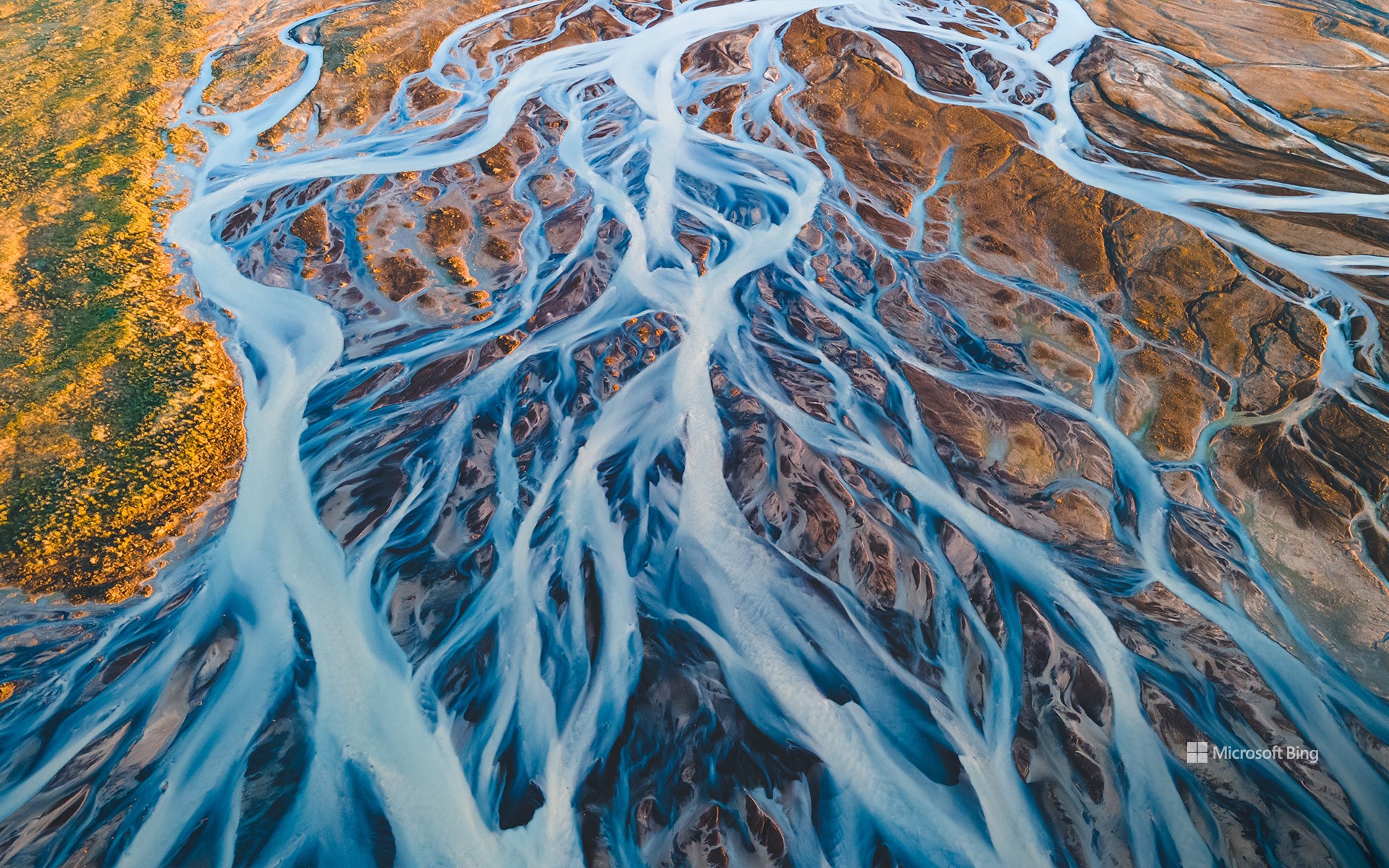 Glacial rivers in 'the land of fire and ice'—Iceland—have shaped the landscape over thousands of years. The rivers seen in today's image are formed from the meltwater of vast glaciers like Vatnajökull, Langjökull and Hofsjökull. Vatnajökull, the largest ice cap in Iceland, covers over 770,000 hectares—approximately 10% of the country's landmass. As the glaciers melt, the water carries fine sediments, creating a braided river system with a milky appearance that contrasts with the earthy tones of the volcanic terrain. Every spring and summer, the rivers swell with seasonal meltwater, continually shaping and reshaping the land.