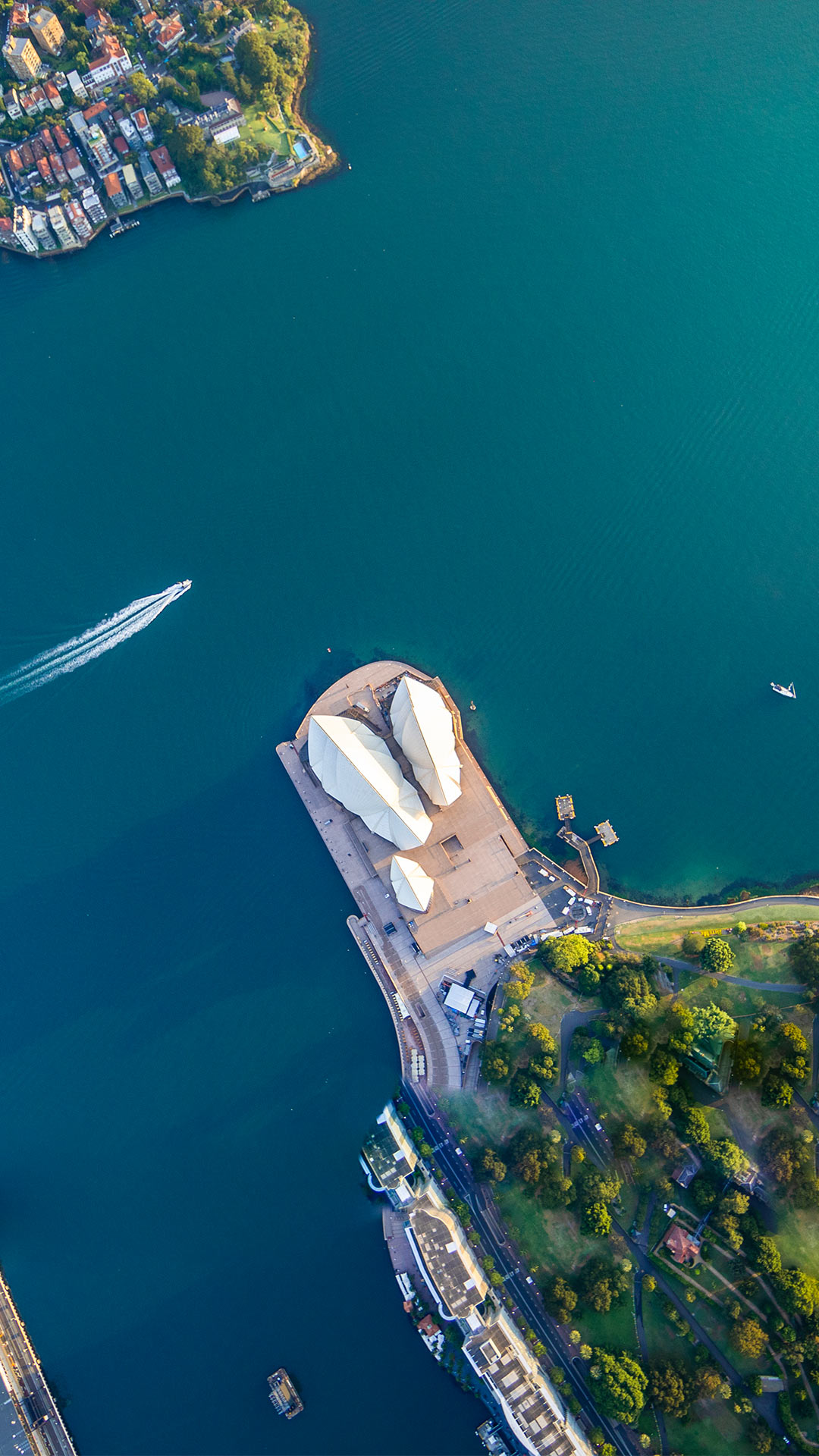 Today's photo features a spot in Sydney, Australia, where shimmery waters meet famous landmarks: Port Jackson, more commonly known as Sydney Harbour. In the center, we have a bird's-eye view of the Sydney Opera House, an architectural icon with sail-like shells that shine bright under the Australian sun. Designed by Danish architect Jørn Utzon, this UNESCO World Heritage Site took 14 years to complete and hosts over 1,500 performances annually. Just across the harbor, on the left side of the picture, the Sydney Harbour Bridge—affectionately called 'the Coathanger' for its arching steel frame—connects the city's northern and southern shores. When it opened in 1932, it was the world's widest long-span bridge. Adventurous visitors can climb its 440-foot summit for breathtaking panoramic views.