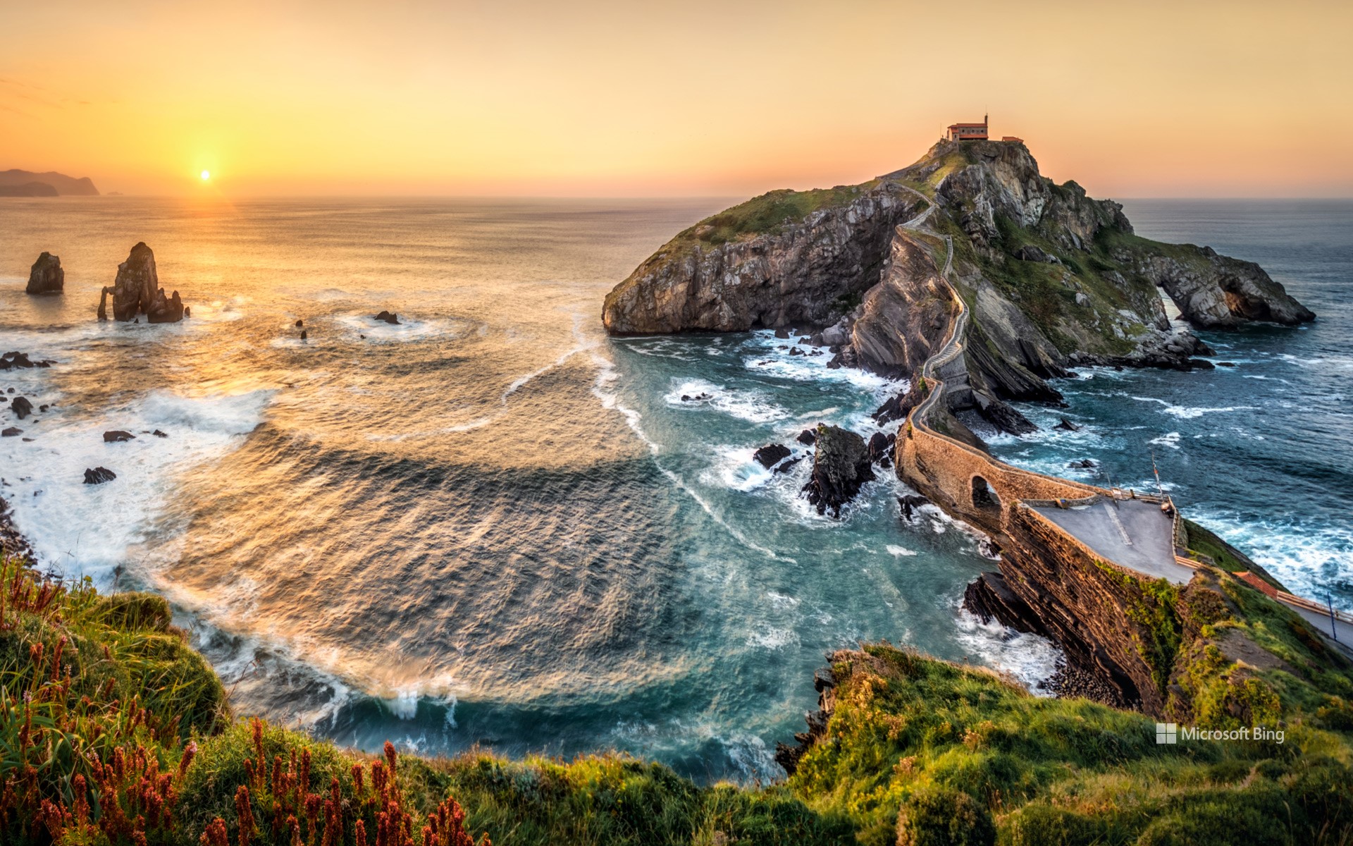 Islote de Gaztelugache al atardecer, País Vasco, España
