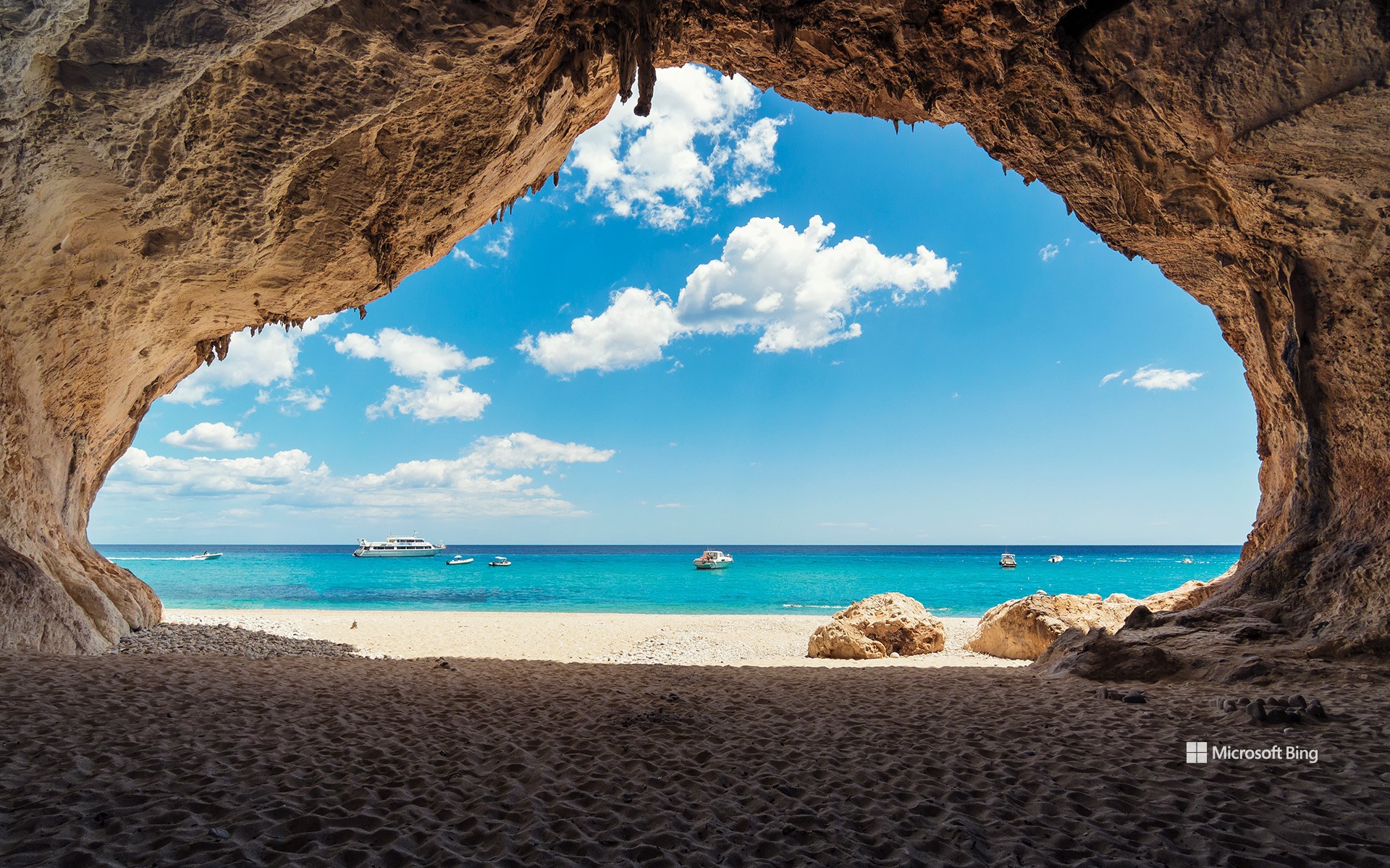 Estamos en Cala Luna, una joya del golfo de Orosei, en la costa oriental de Cerdeña, Italia, bañado por el mar Tirreno. Aquí, la naturaleza ha esculpido cuevas en la roca que se abren al mar, creando rincones íntimos donde el agua transparente entra suavemente y refleja la luz sobre las paredes de piedra caliza.