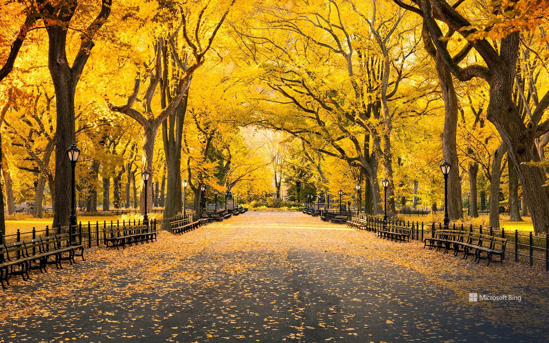 黄金色に染まる道