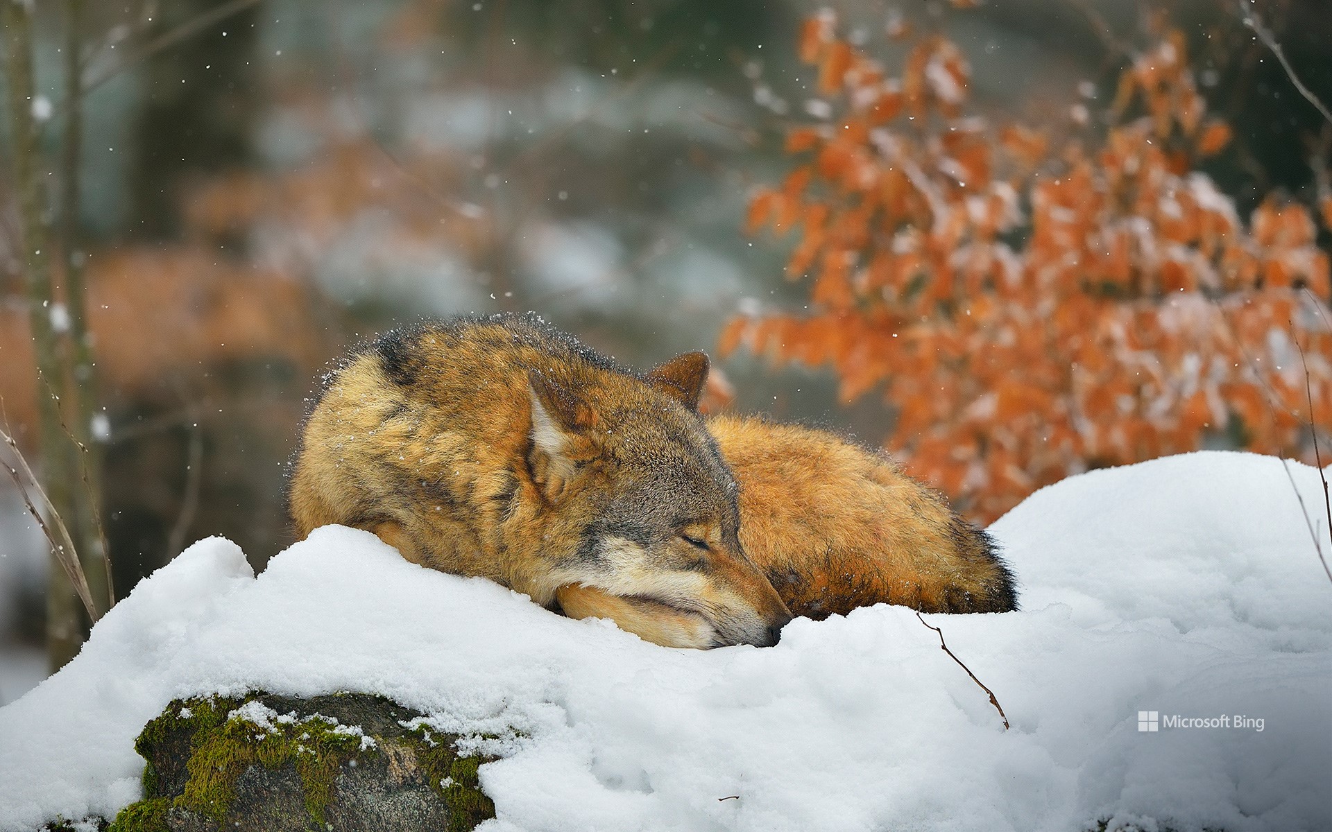 Non c’è niente di meglio di un pisolino pomeridiano per digerire un lauto pasto! Il lupo presente sullo sfondo odierno senz’altro ne converrà. La foto che vediamo è stata scattata nella Parco Nazionale della Foresta Bavarese, in Germania. Istituito nel 1970, esso è caratterizzato da foreste secolari, ampie distese di verde e un terreno variegato, offrendo un habitat ideale per una vasta gamma di animali selvatici. Infatti, la fauna del parco include specie emblematiche come il cervo rosso, la lince, il capriolo, il gufo pigmeo e, grazie ai programmi di reintroduzione, anche il lupo. Gli ampi territori del parco forniscono agli esemplari di lupo la libertà di muoversi e cacciare in modo naturale, sottolineando l'importanza della conservazione dell'habitat e della biodiversità.