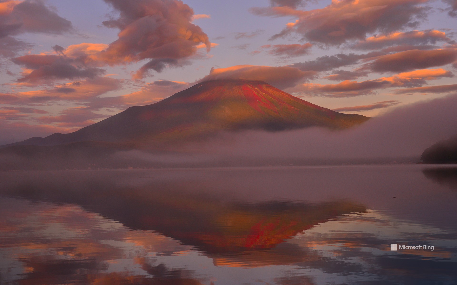 朝焼けに輝く富士山と山中湖, 山梨県 (© magicflute002/Getty Images)