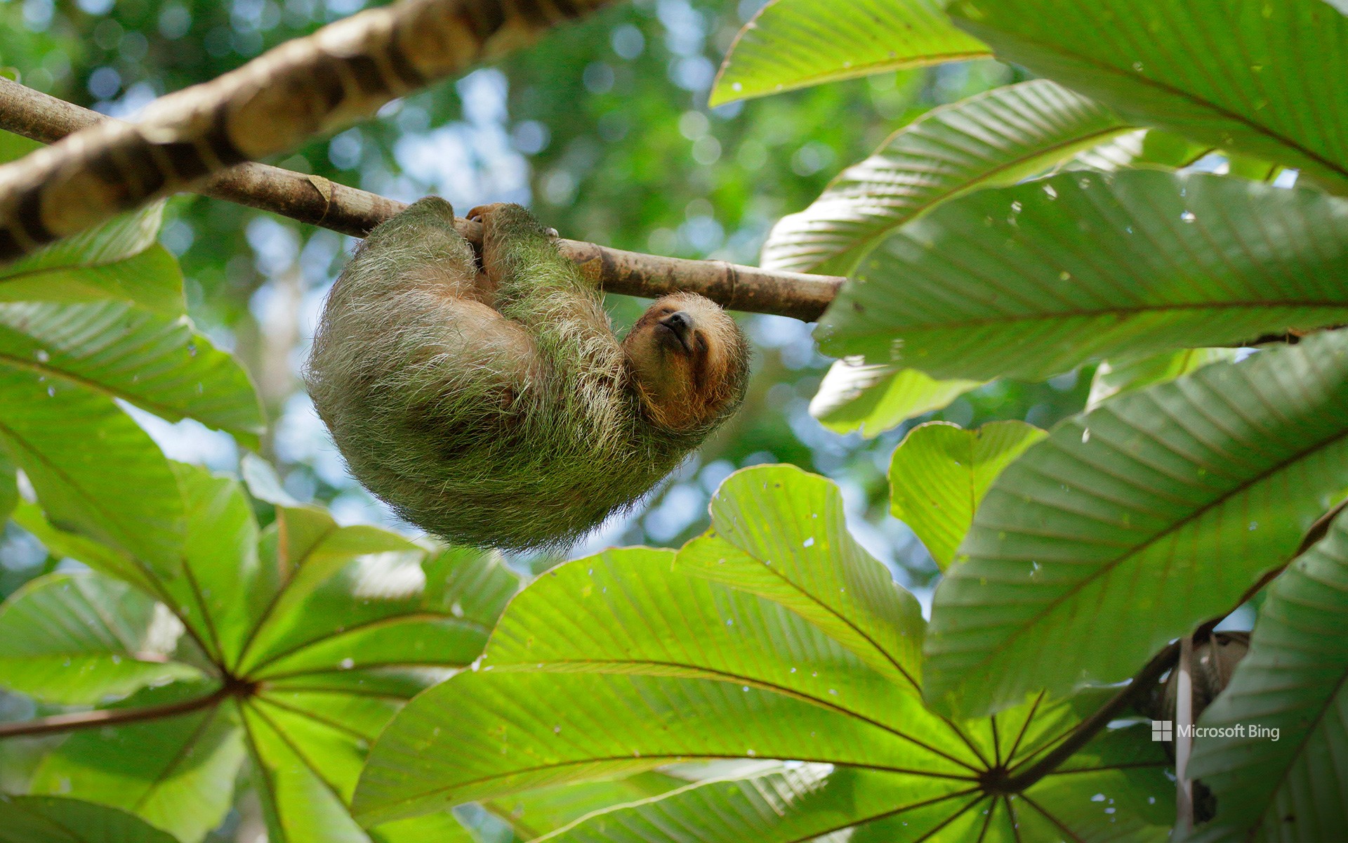 そして、今日の画像はコスタリカの緑豊かな森に生息しているミユビナマケモノです。彼らの胃は 4 つの部分に分かれており、1 度の食事でより多くの栄養を摂取できます。ほとんど動かないため、体毛に藻が生えることもあり、これがカモフラージュに役立っています。