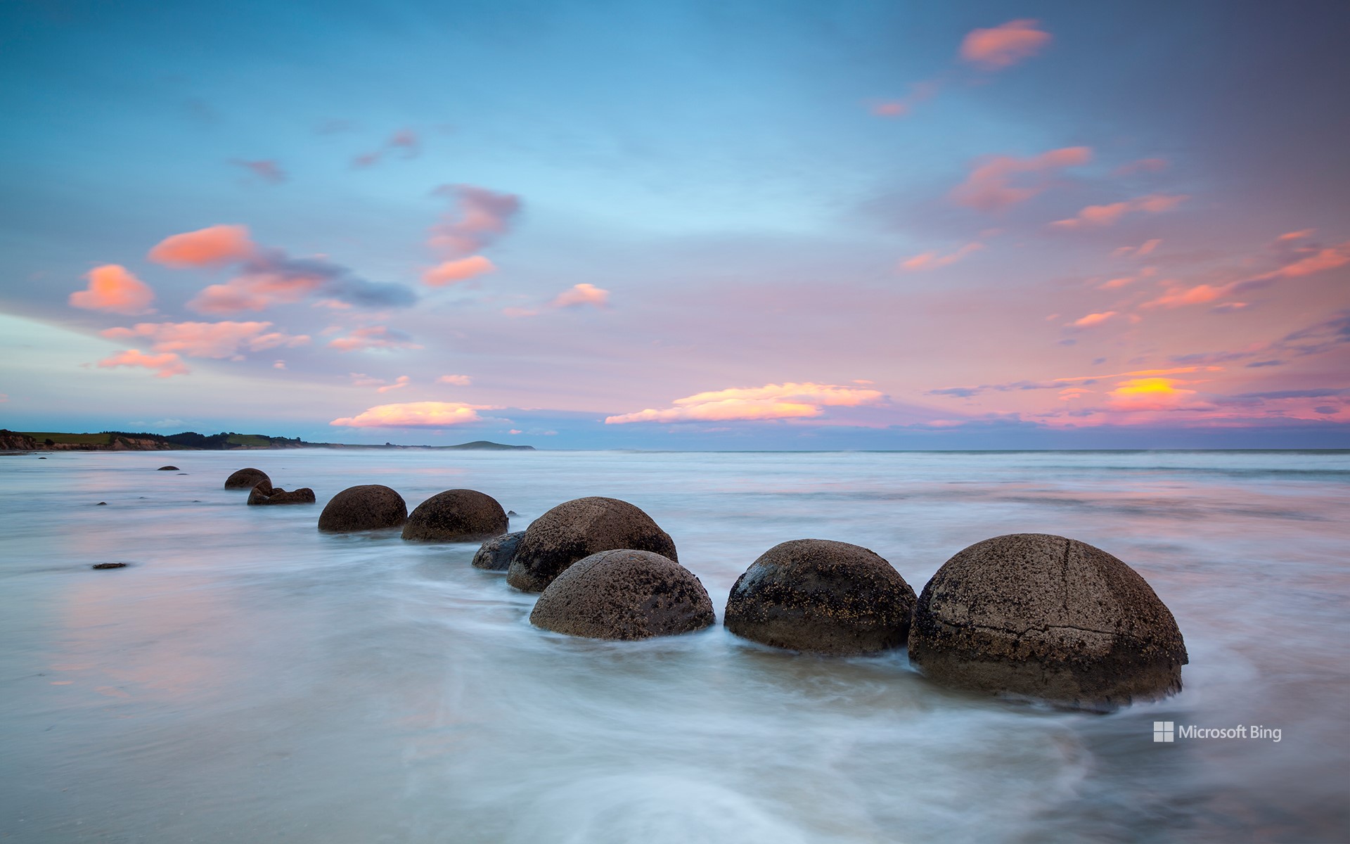 丸い巨石が転がる海岸, ニュージーランド (© Douglas Pearson/eStock Photo)