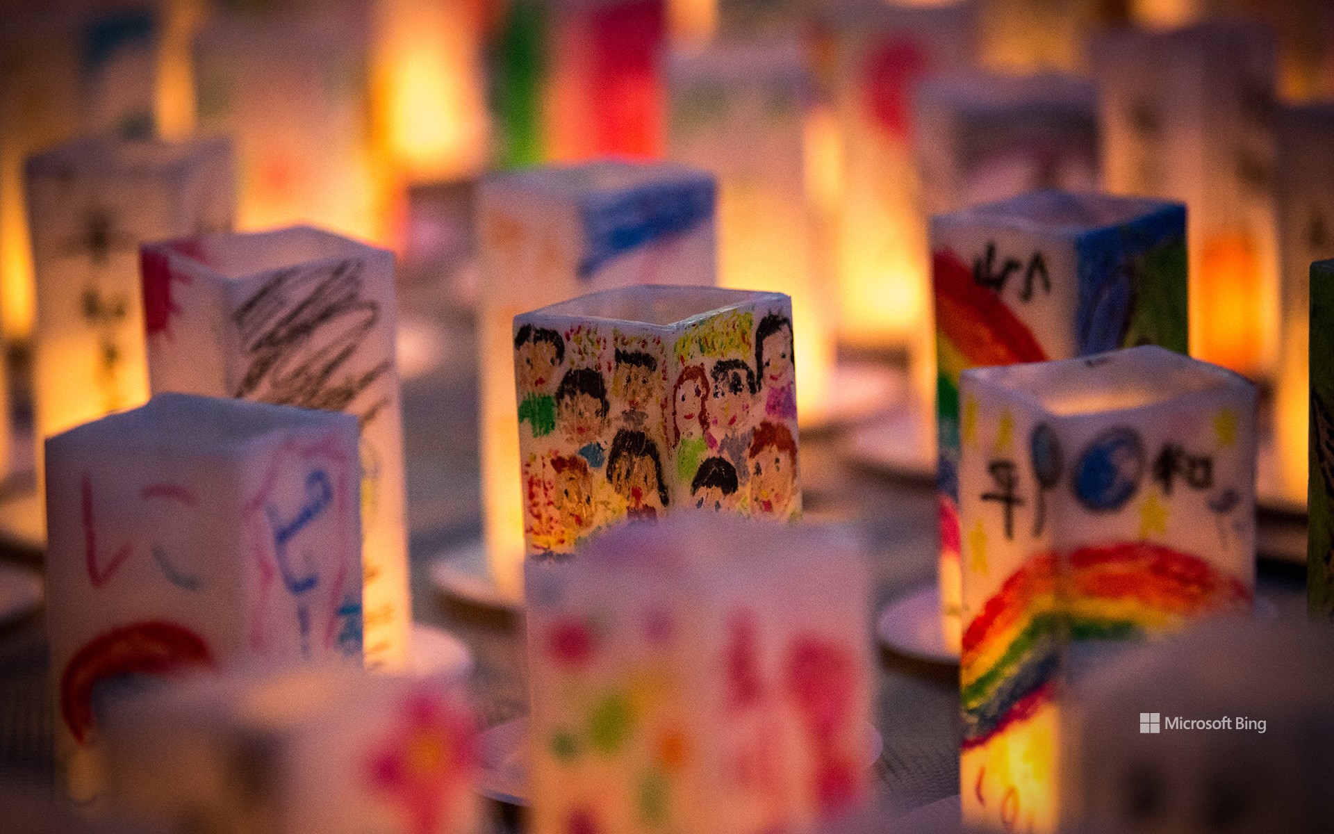 画像は、もう一つの被爆都市・長崎の平和公園で撮影されたもので、子どもたちが平和への祈りを込めて作った「ピースキャンドル」です。今日、広島でも、原爆死没者の慰霊を行うと共に、平和への祈りを込めた「ピースメッセージとうろう流し」が行われます。