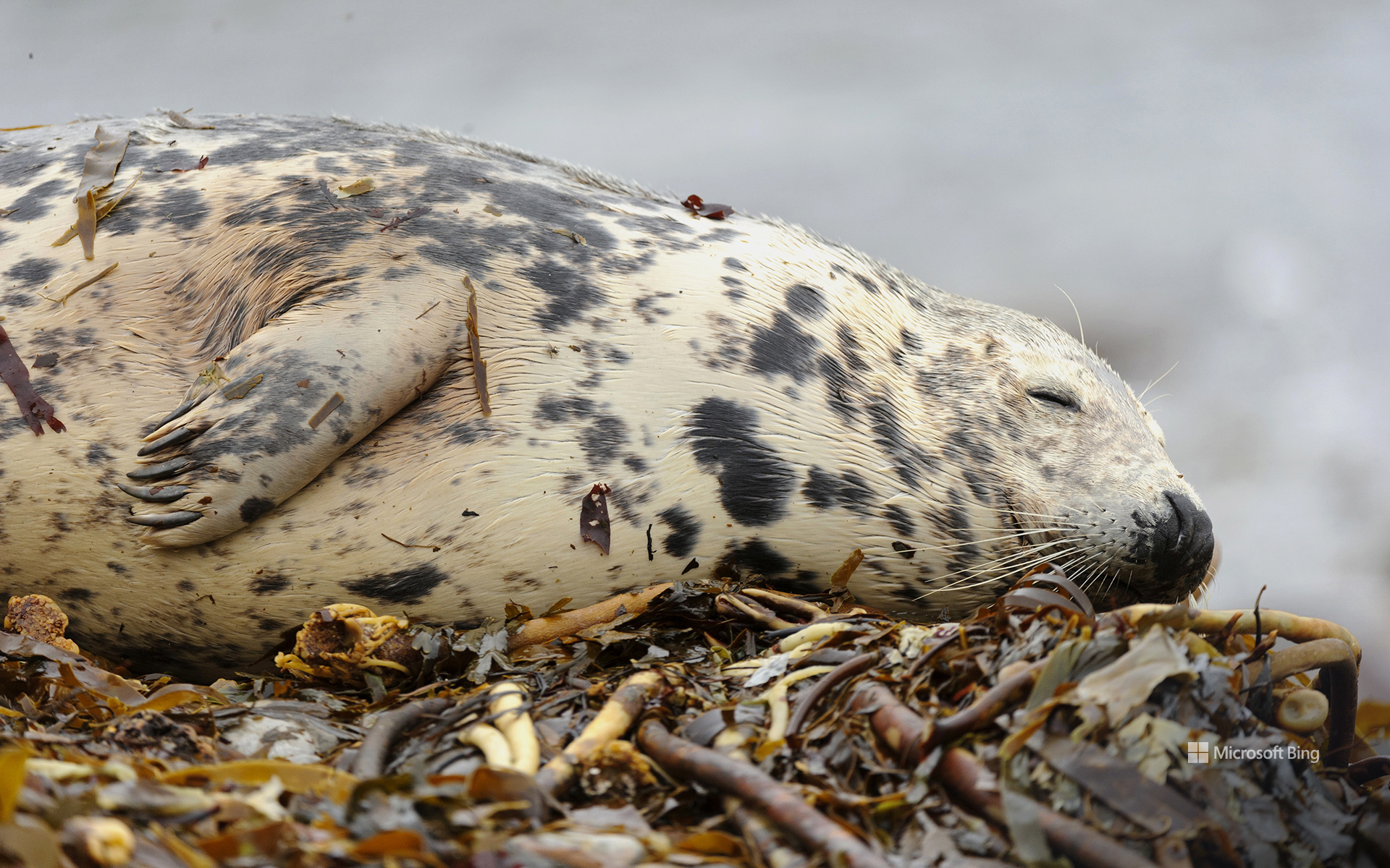 Grey seal sleeping on the beach, Orkney Islands, Scotland