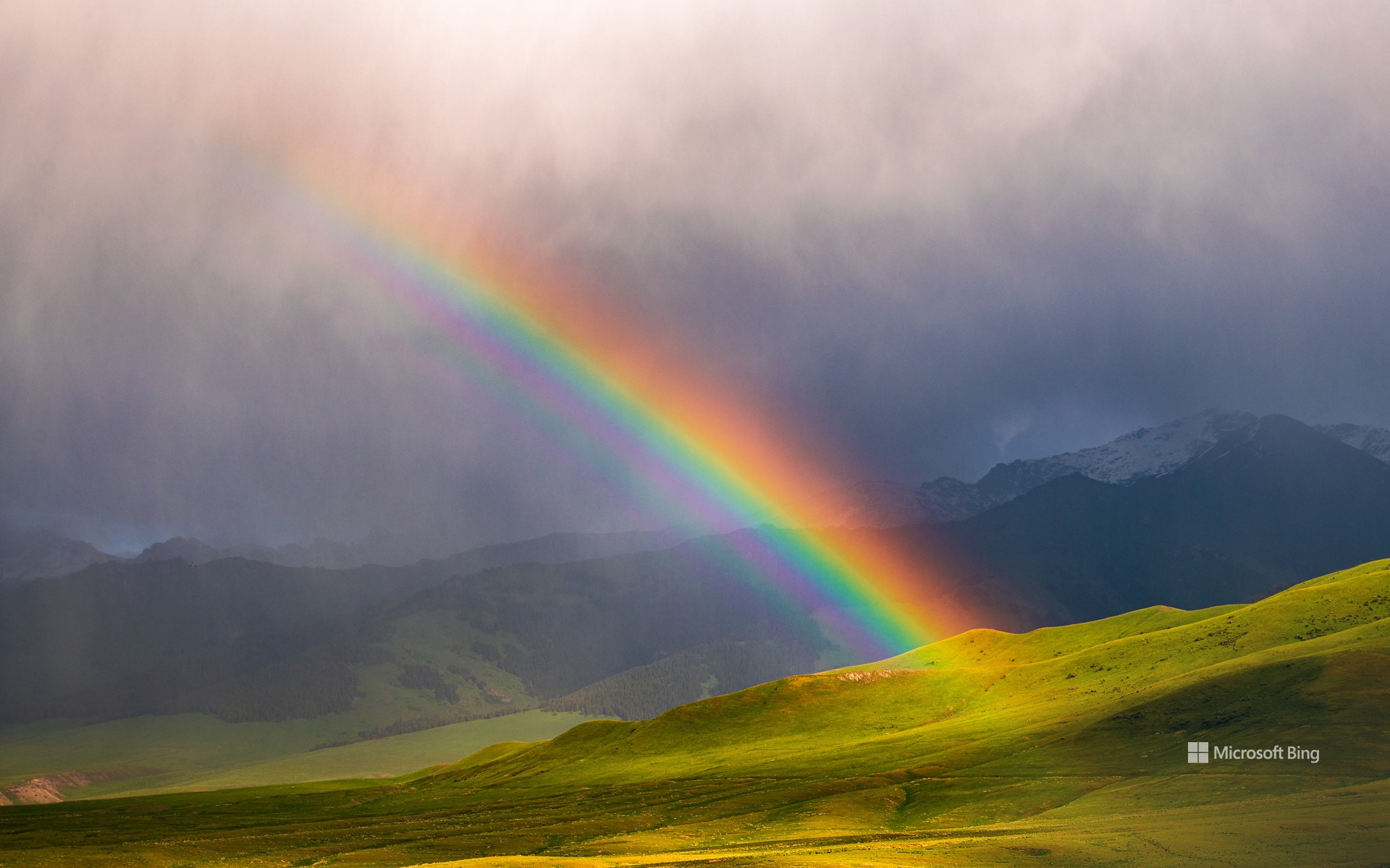 Os arco-íris ocorrem quando a luz do sol se reflete e se dispersa pelas gotas de chuva na atmosfera. No Dia de Encontrar um Arco-Íris, as pessoas participam de atividades como procurar arco-íris após a chuva ou criar arte com o tema arco-íris. Na imagem de hoje, vemos um arco-íris salpicado nas majestosas montanhas Kakshaal Too, no Quirguistão. A cordilheira Kakshaal Too, com seus picos escarpados e vales imaculados, é um cenário adequado para a beleza fugaz do arco-íris. Aqui no nosso lado mundo, uma das regiões super conhecidas por oferecerem vistas incríveis de arco-íris são as Cataratas do Iguaçu, na fronteira entre o Brasil e a Argentina, onde a combinação das quedas d'água e do sol frequentemente resulta em arco-íris impressionantes.
