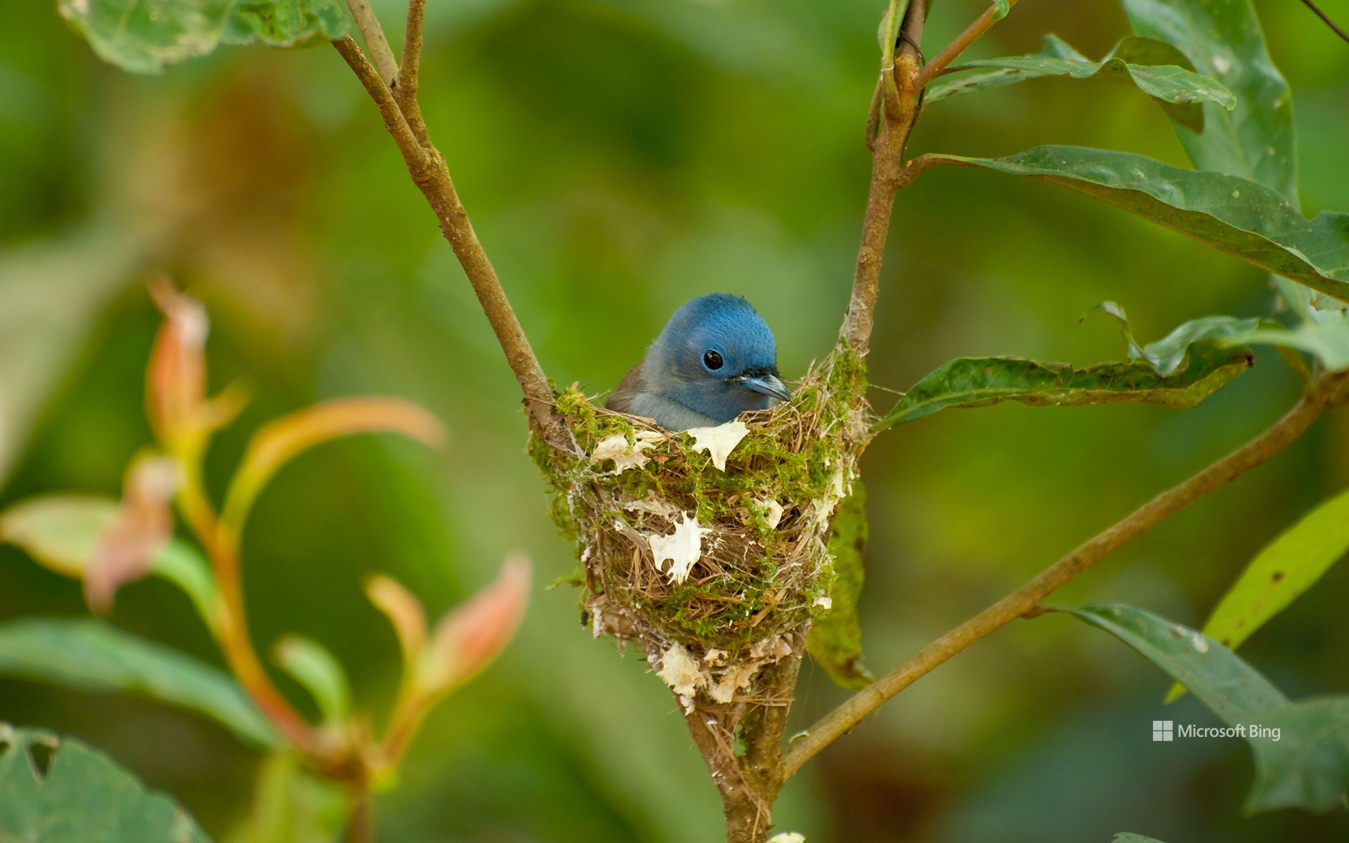 Um lampejo azul rompe o verde da floresta tropical: é o monarca-azul-de-solidéu, protagonista da imagem de hoje. Pequeno, ágil e vibrante, esse pássaro asiático caça insetos no ar com a destreza de um bem-te-vi. E sua habilidade vai além: o monarca constrói ninhos como fortalezas naturais, tecendo uma taça com fibras vegetais e teias de aranha, reforçadas com fungos antibióticos. O toque final? Ovinhos de aranha como decoração, unindo beleza à funcionalidade.