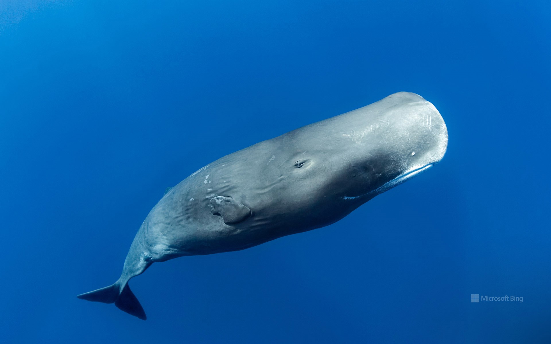 在多米尼加罗索海岸附近的抹香鲸,加勒比海 (© Tony Wu/Minden Pictures)