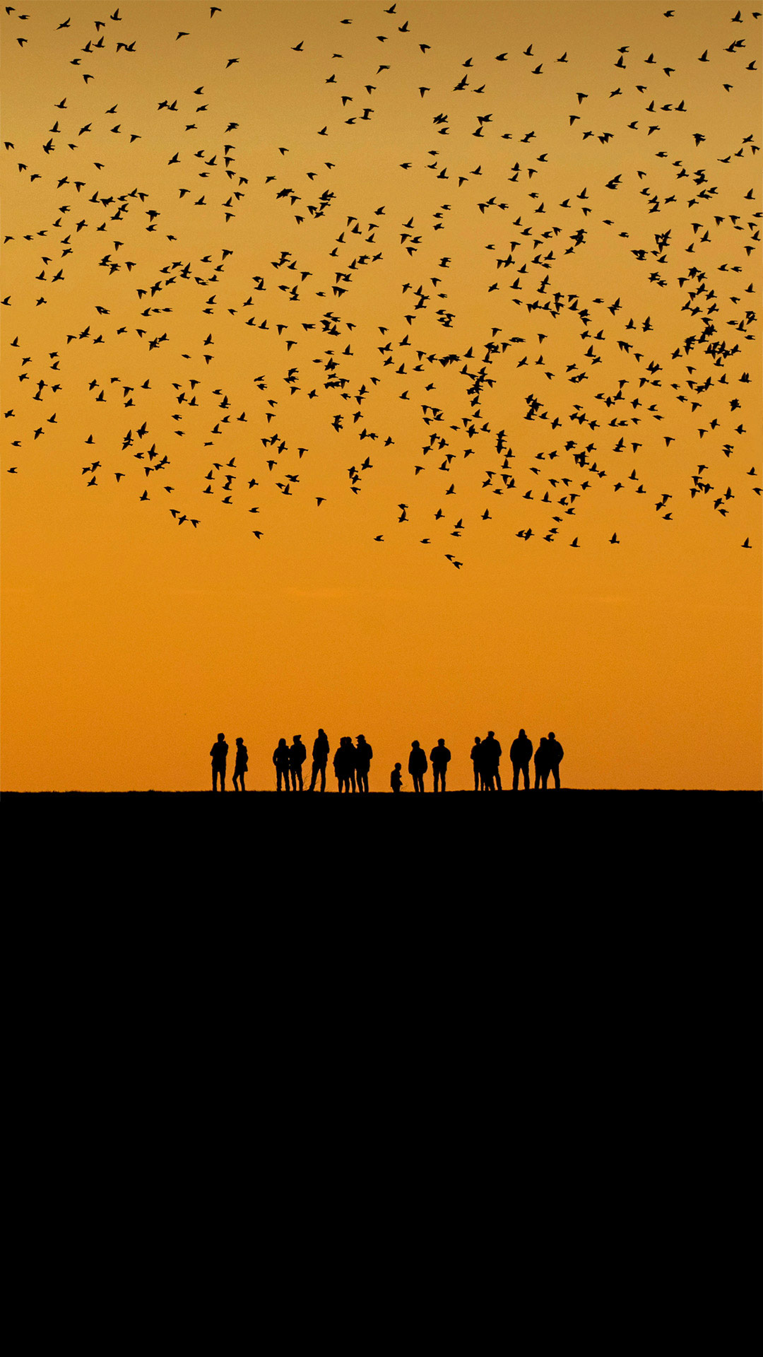 秋季在湿地上空迁徙的椋鸟群 (© Viking/Alamy)
