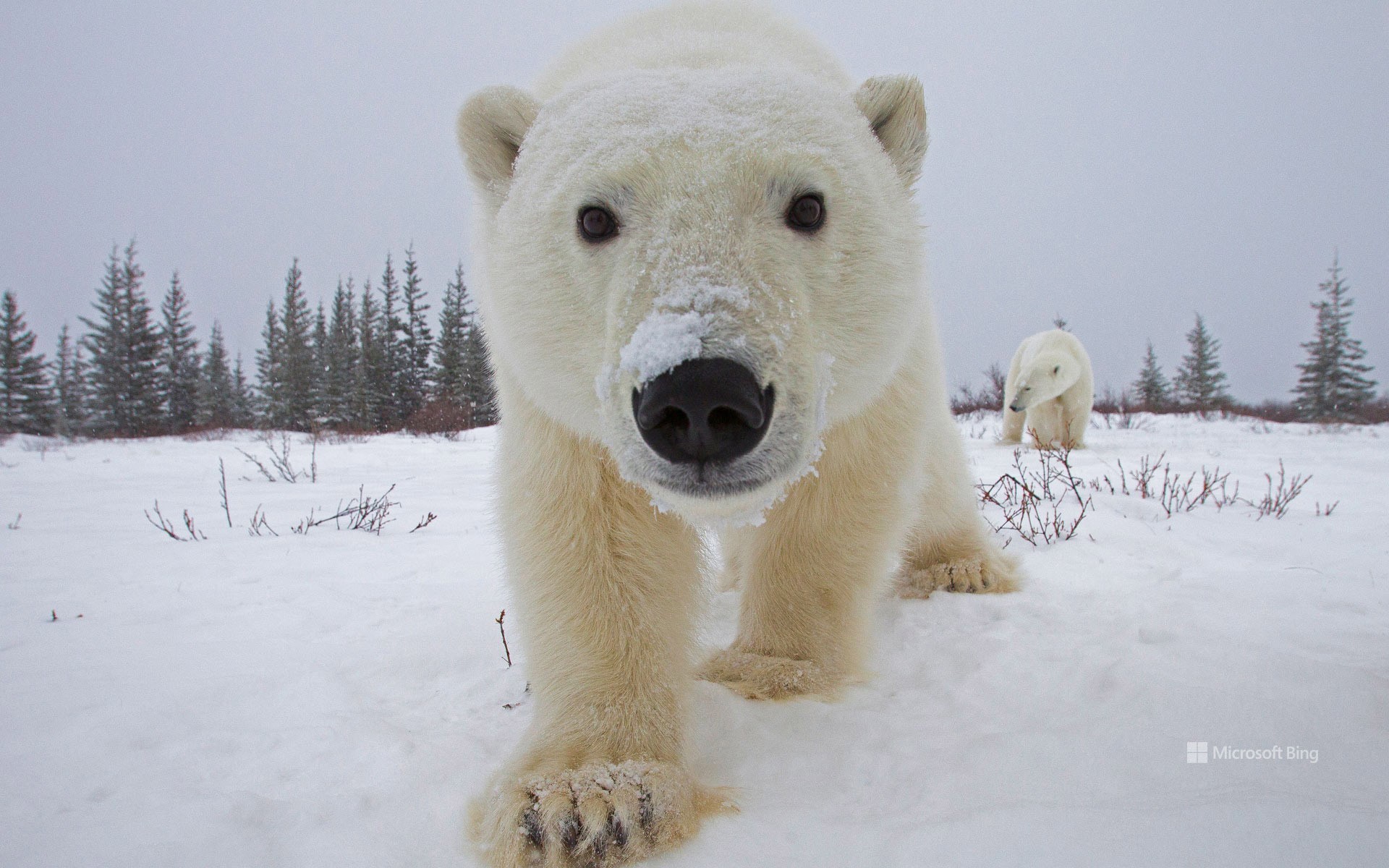 好奇地看着相机的北极熊,加拿大丘吉尔镇 (© Matthias Breiter/Minden Pictures)