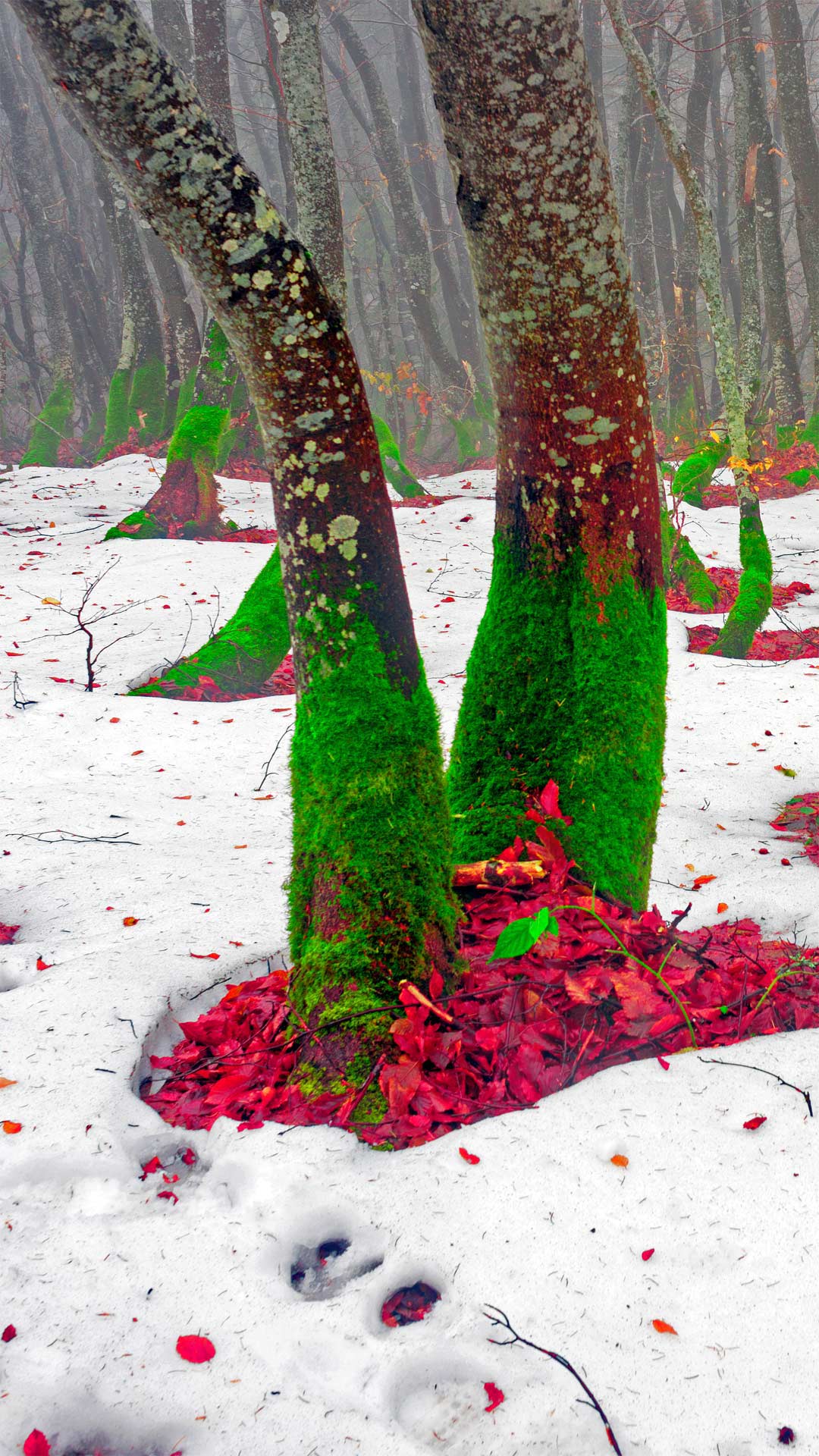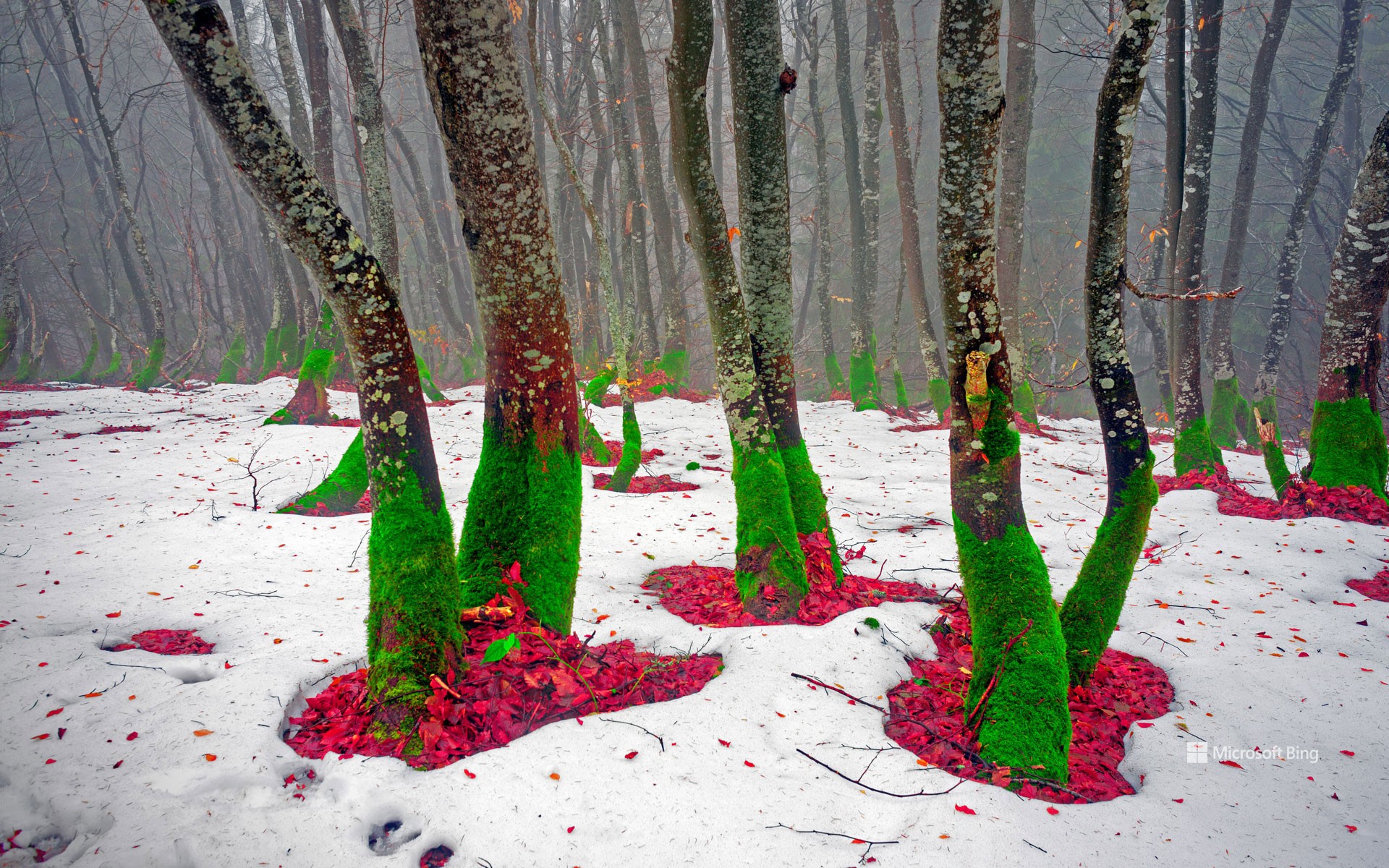宛如圣诞精灵的树干,乌克兰喀尔巴阡山脉 (© panaramka/Getty Images)