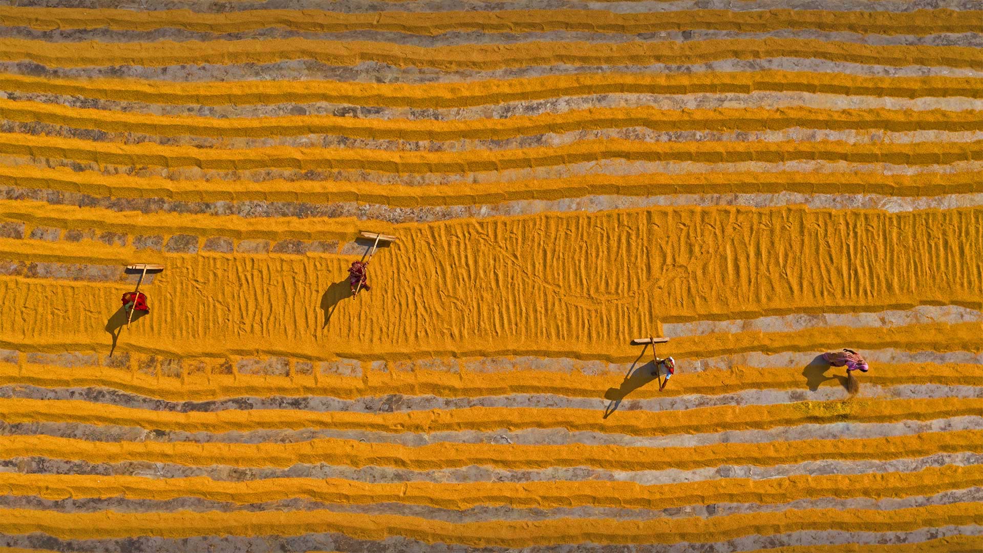 正在晾晒的大米,孟加拉国达卡 (© Amazing Aerial Agency/Offset by Shutterstock)