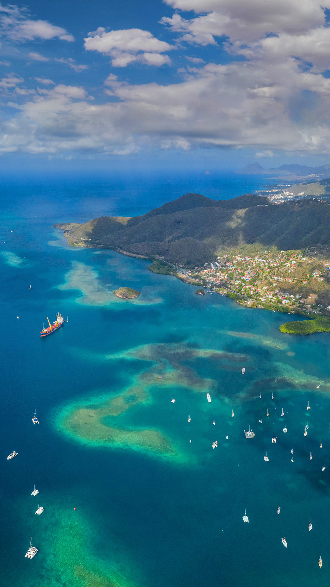 蔚蓝海域中的马提尼克岛,加勒比海 (© Airpano LLC/Amazing Aerial Agency)