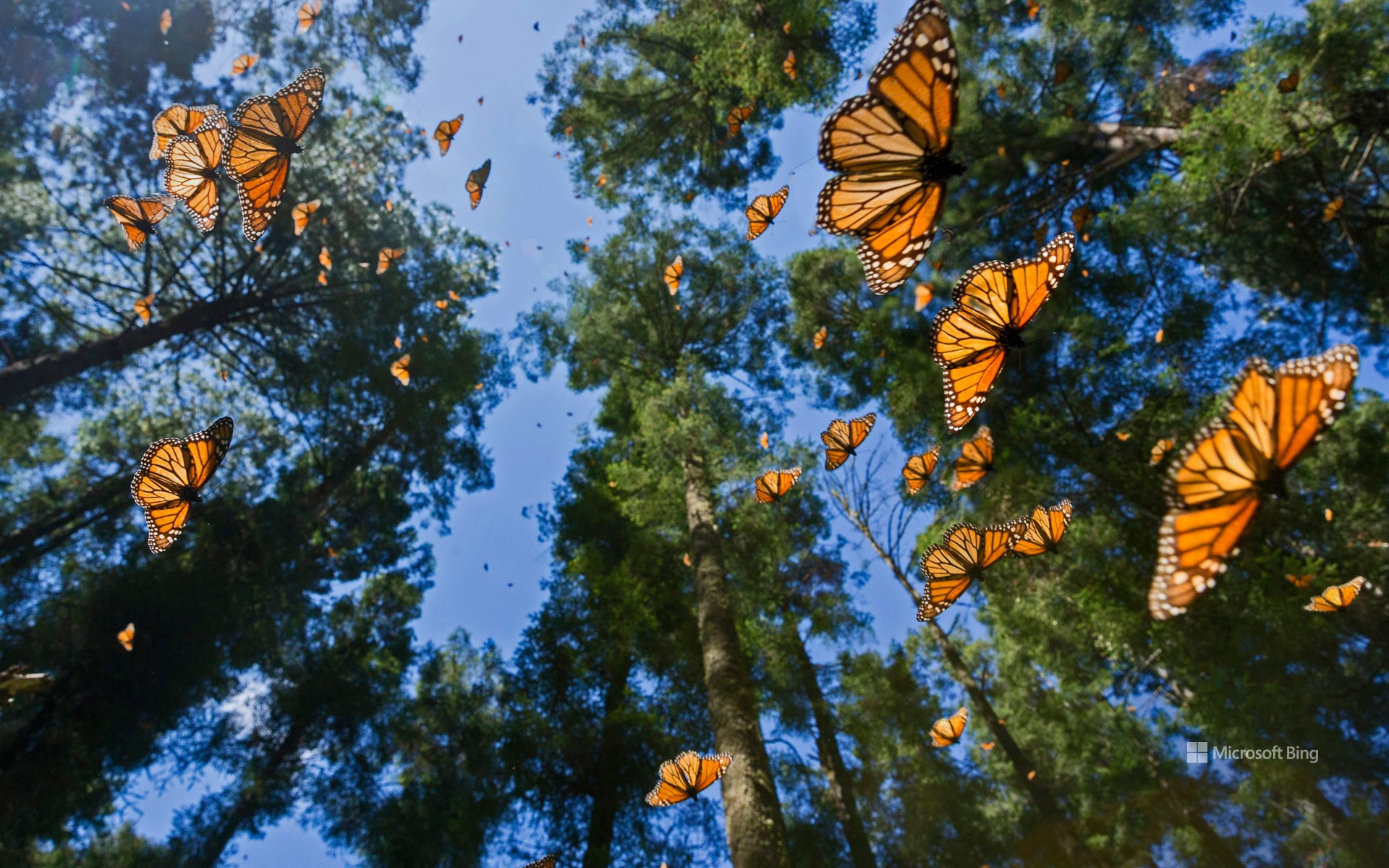 每年,墨西哥最为壮观的自然现象之一就发生在墨西哥城以西的森林山脉中。1 月中旬至3月下旬,黑脉金斑蝶群(帝王蝶)从寒冷的北方迁徙到这里来寻找温暖,并开始它们的繁殖季节。 这些巨大的飞行群落可以容纳多达 2000 万只黑脉金斑蝶,它们利用气流每天飞行100海里。