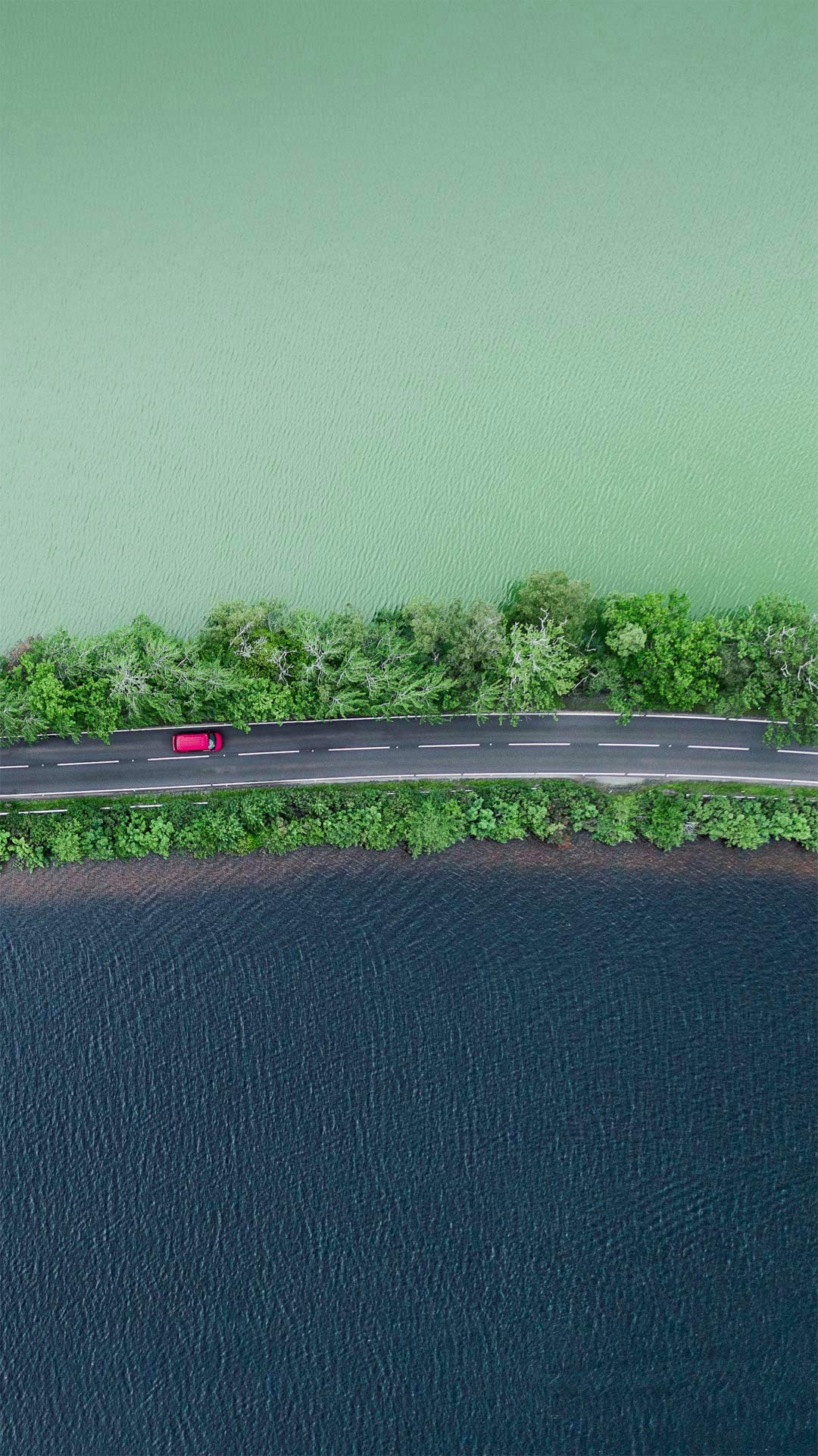 分隔两个湖泊的公路,苏格兰高地 (© Abstract Aerial Art/Getty Images)
