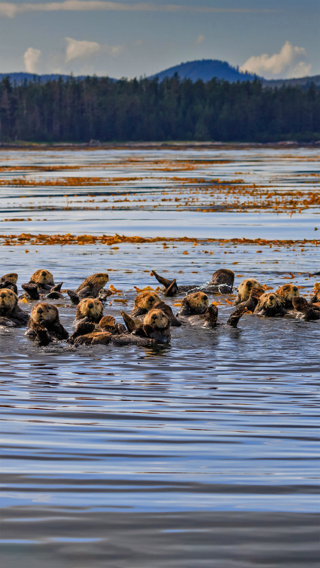 海獭被称为最可爱的漂浮动物。照片里这群小家伙们正在阿拉斯加州锡特卡海峡里过着它们日常的生活,像一支漂在水上的小型舰队。这支舰队里,有雄性海獭、雌性海獭,还有海獭宝宝,雄性海獭往往体型更大,数量可超过1000只。它们漂浮的身体可以用来做摇篮和餐桌。这就很方便了,因为海獭大部分时间都在水中度过,甚至在海中分娩。尽管它们似乎过着无忧无虑的生活,整天就是在嬉戏、梳理毛发、潜水,但其实它们在保持水生生态系统的健康方面发挥着重要作用。