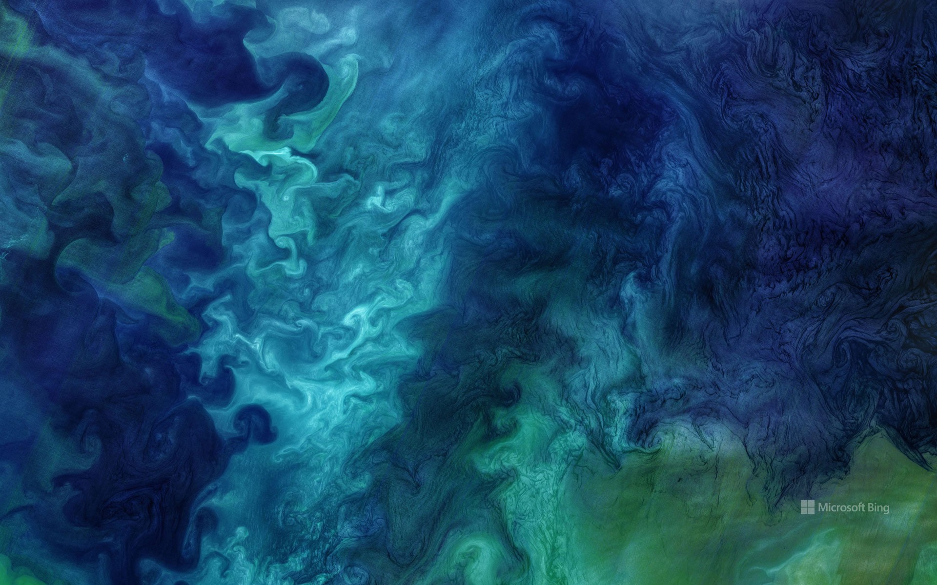 今天照片中这些交织在一起的蓝色大理石纹并非现代艺术作品,而是大自然的杰作。这是阿拉斯加海岸附近浮游植物暴发的卫星照片。