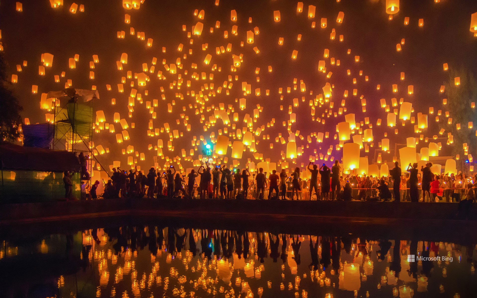 每逢泰国的易鹏节,放飞天空的孔明灯就如点点繁星,映衬着那一轮圆月。今天的照片展示的就是人们在清迈放飞孔明灯、庆祝易鹏节的盛景。清迈是泰国第二大城市,也是易鹏节的发源地。