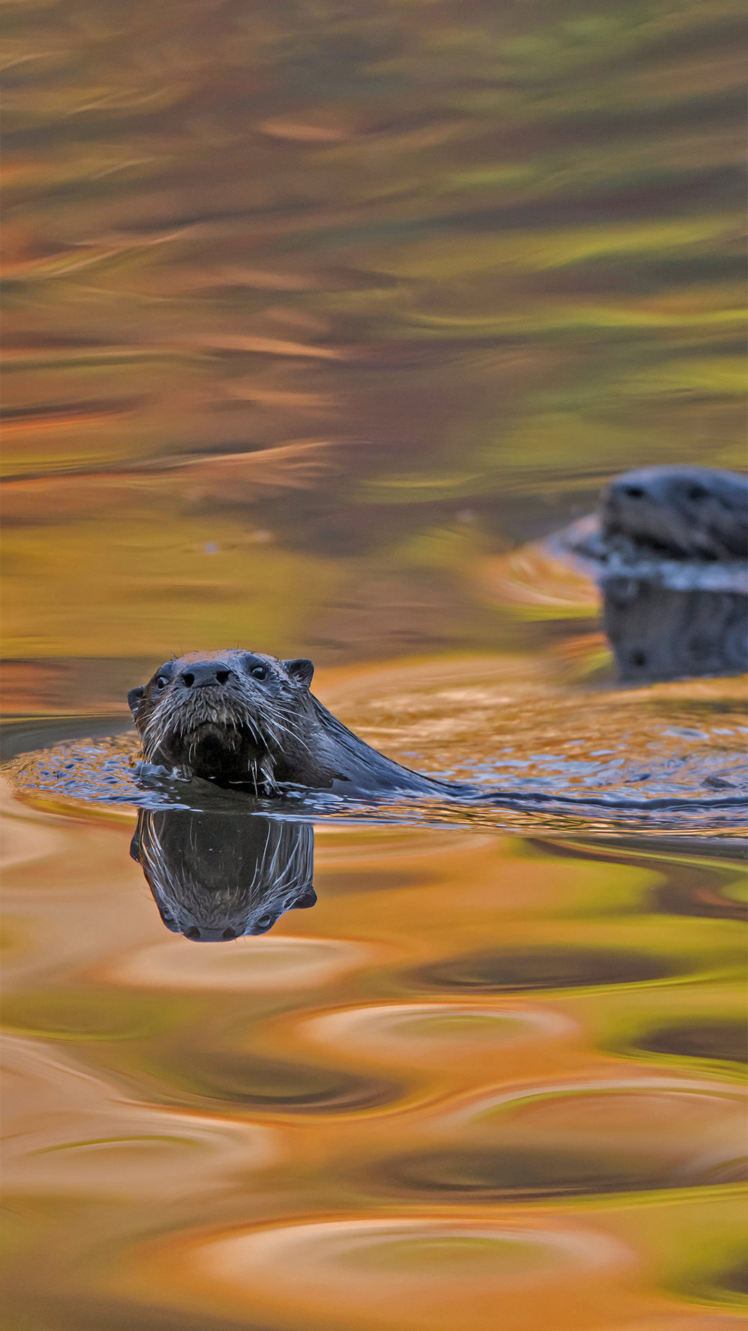 今天照片里的是两只北美水獭,拍摄于阿卡迪亚国家公园。严格来说,这些别名“水狗”的水獭是黄鼠狼家族的成员。它们不只出现在河里,还遍布北美的水道和海岸。水獭眼睛近视,视力适合辅助游泳,因此它们有时会冲向人类或船只,可能并非故意,只是没看见。
