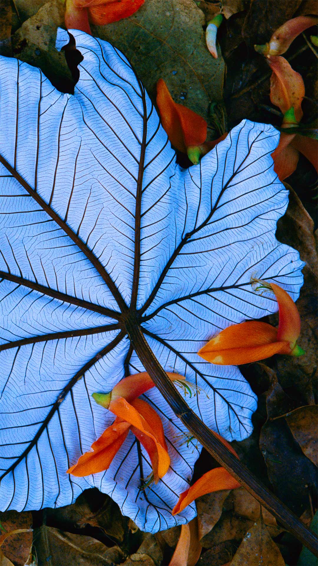 今天照片里的是号角树树叶和龙虾爪花瓣,拍摄于墨西哥的热带雨林。号角树属的树木都长得很快,平均每年会长高约2.5英尺,如果条件理想,它们甚至能一年长高10英尺,最终它们将达到约60英尺的高度。号角树的树叶干枯后,会皱缩成拳头状,呈现出有趣的图案形状。号角树属的树木因其果实和叶子而深受树懒、猴子与巨嘴鸟等动物的喜爱。许多号角树属树木还与阿兹特克蚁有着共生关系,号角树为蚂蚁提供住所和食物,而蚂蚁则保护树木免受食植动物的侵害。