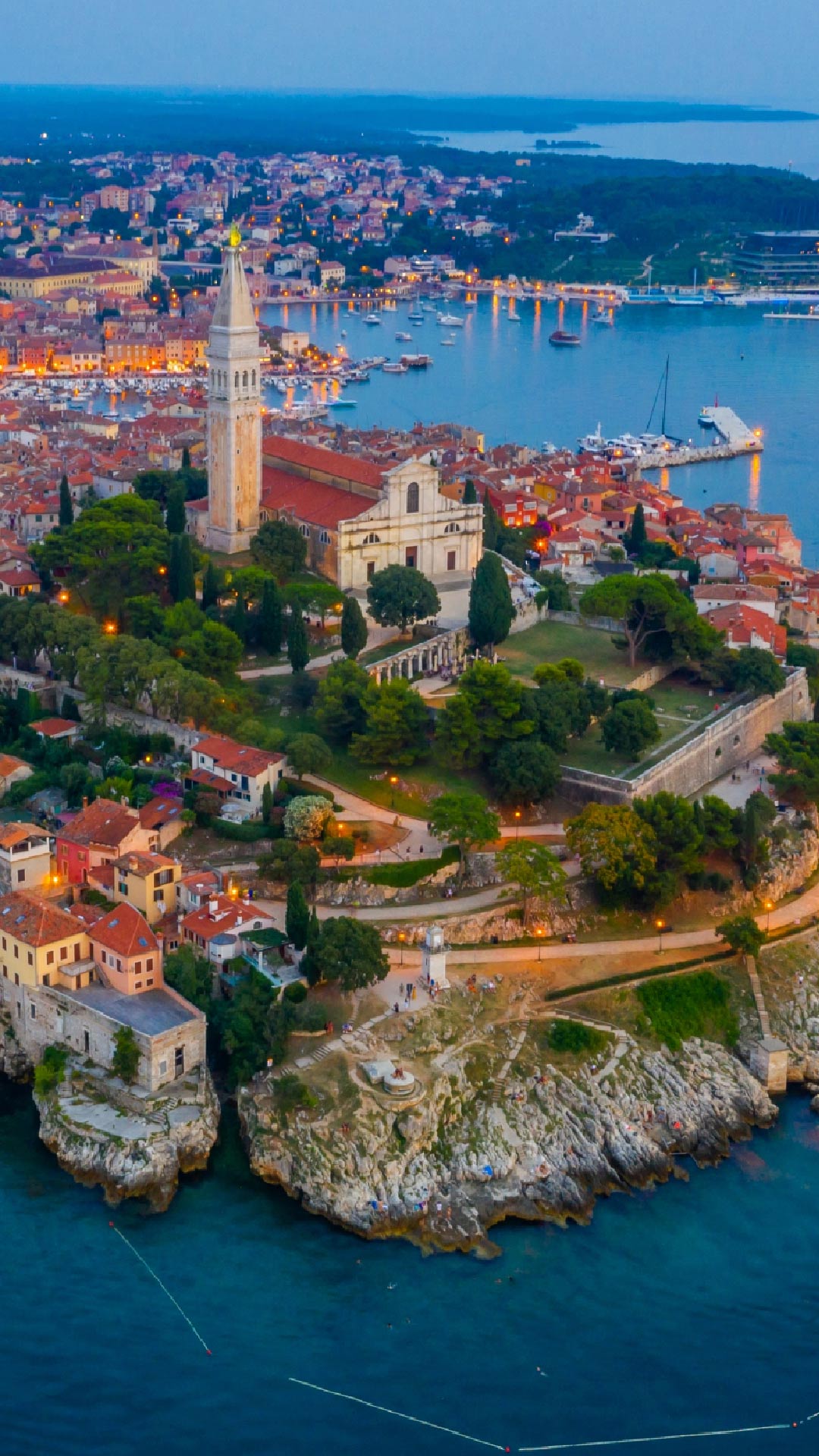 美丽而又历史悠久的罗维尼矗立在亚得里亚海边。圣尤菲米亚教堂200英尺高的钟楼俯瞰着罗维尼老城中心。这座教堂建于18世纪初,也充当着灯塔,照亮镇上渔船回家的路。