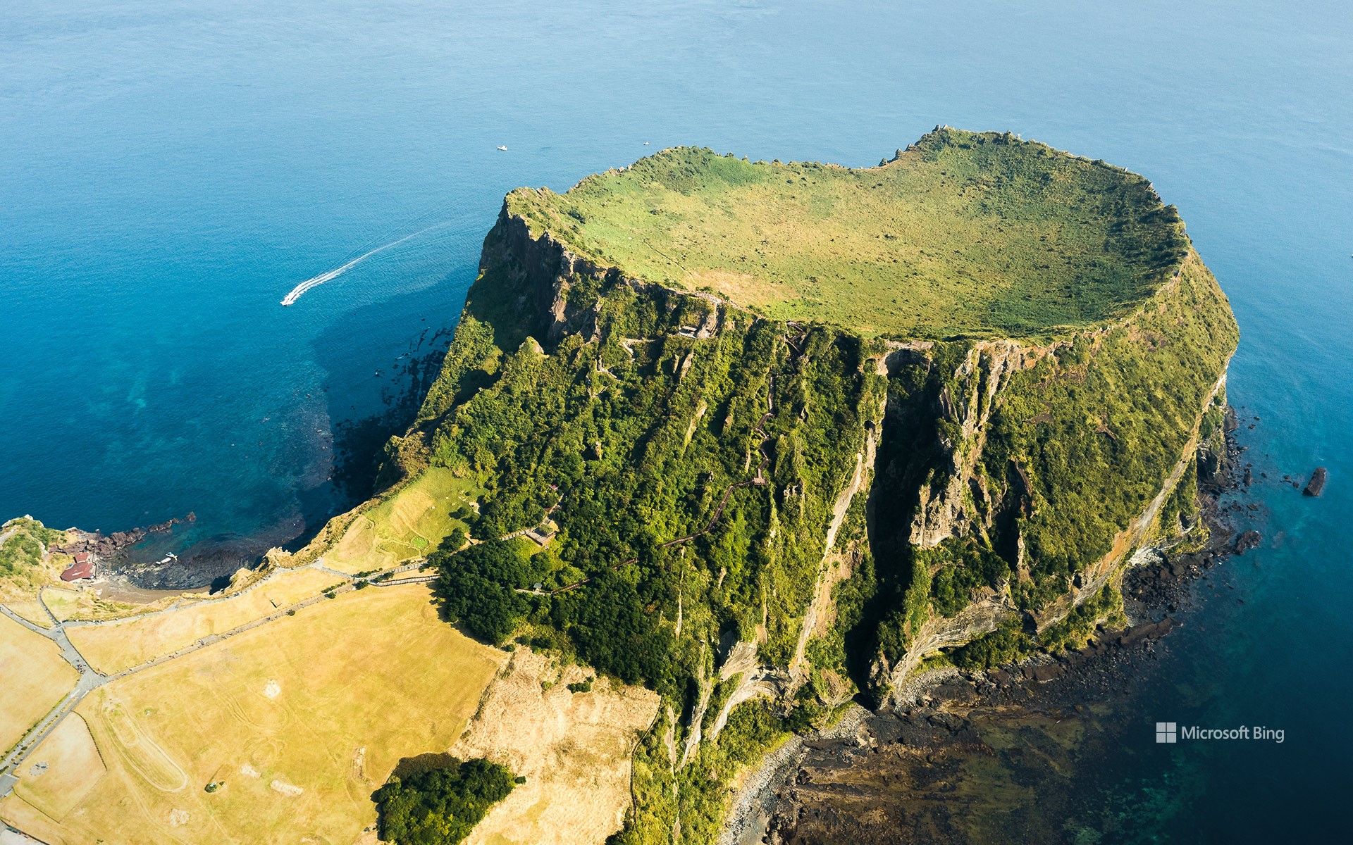 济州岛上充满奇观,火山、古老石像、瀑布和岩石海岸,还有今天图片中的主角,城山日出峰,是岛上罕见的凝灰岩锥,由5000年前的一次海底火山喷发而形成。城山日出峰于2007年被列入联合国教科文组织世界自然遗产名录。