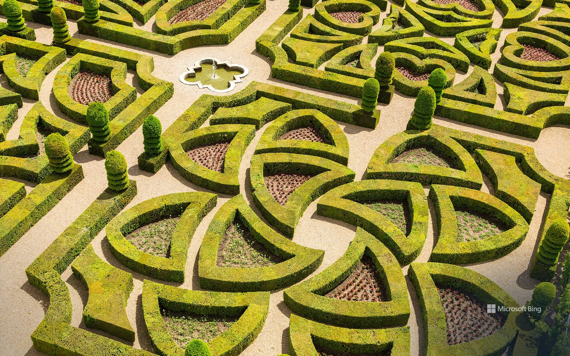 这边的草地确实更绿,尤其是当那一边是维朗德里城堡时。虽然法国卢瓦尔河谷遍布令人惊叹的城堡,但维朗德里城堡却与众不同,它并非以高耸的塔楼或中世纪的雄伟气势取胜,而是以花园闻名。这座城堡建于 16 世纪,由弗朗索瓦一世国王的财政大臣让·勒·布雷顿所建,目的就是为了令人印象深刻。与为战争而建的防御性城堡不同,维朗德里城堡的设计注重舒适,拥有大窗户和开阔、宜人的布局。城堡的花园分布在不同的梯田上。每个梯田有独特的主题。装饰性花园展示了如图所示的几何图案。水景花园则提供宁静的休憩之所,而蔬菜园则将日常作物打造成艺术展示。