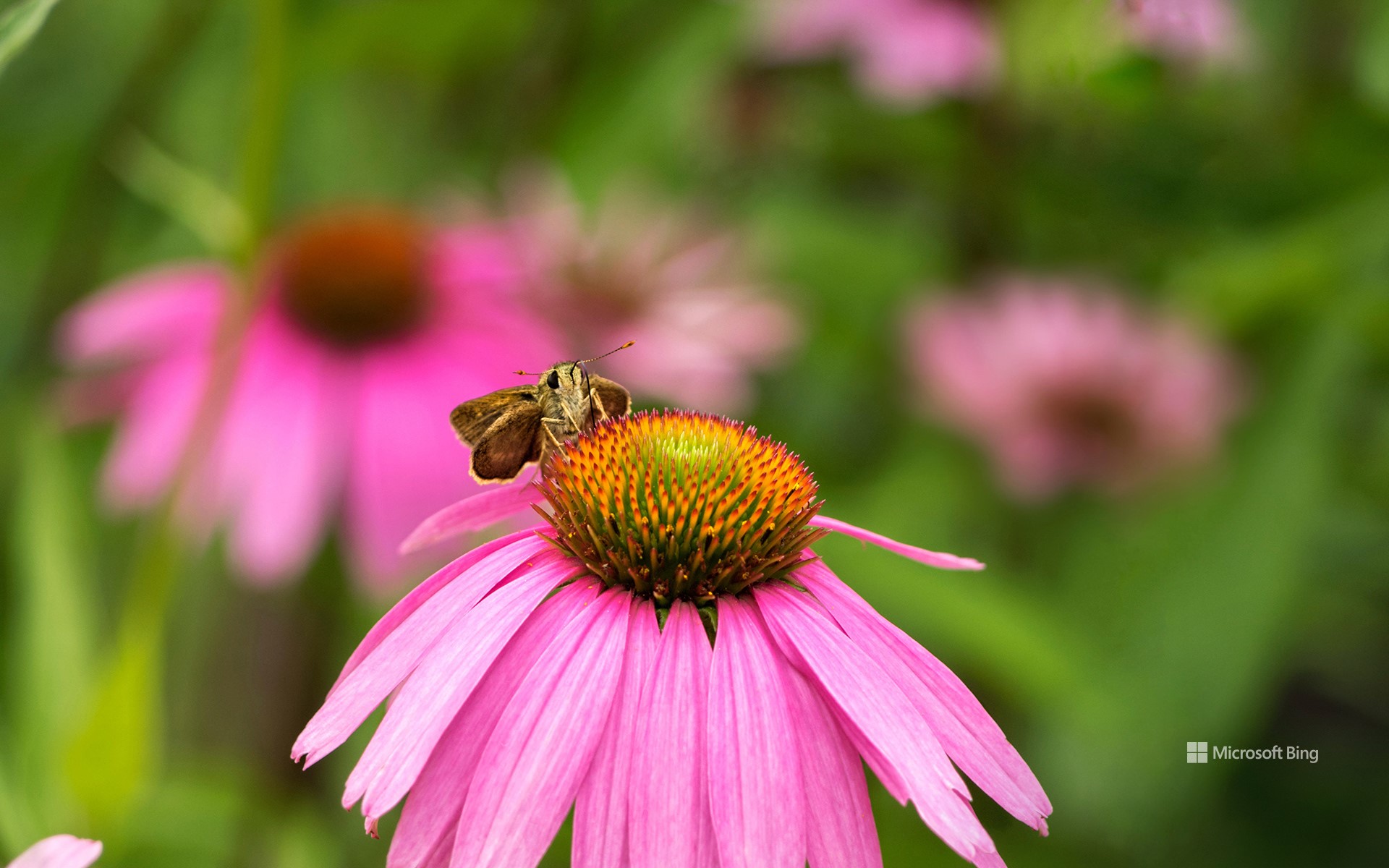 今日图片中展示的是一只灰蝶,它以迅速、跳跃式的飞行方式而闻名,正停驻在一朵鲜艳的紫锥菊上,亦称松果菊。紫锥菊原产于北美,以其耐寒的花朵和独特的刺状花心而广受园艺爱好者和传粉昆虫的喜爱。
