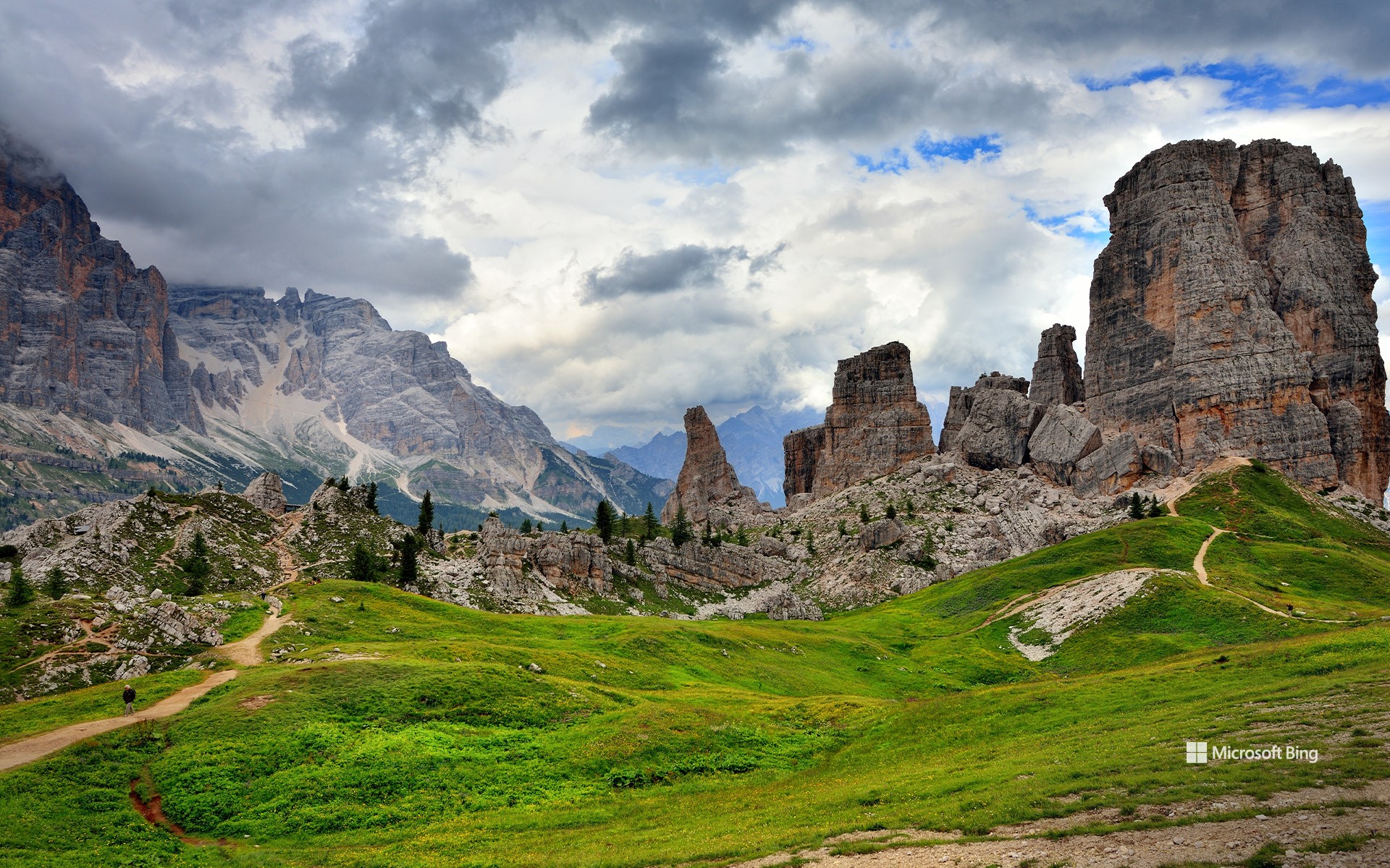 五塔峰坐落于意大利威尼托大区贝卢诺省的多洛米蒂山脉腹地,仿佛天然雕塑般矗立,是夏季避暑、远离海滩与城市喧嚣的理想之选。每一座岩塔皆承载着独特的历史与自然故事:从古文明的遗迹,到徒步与登山者的足迹,再到第一次世界大战时期的军事要地。这些塔峰在战时曾扮演战略要塞的角色,如今游客仍可探访战壕遗址与战争留下的痕迹。然而,自然的力量终将超越人类历史:茂密松林、芳草牧场与山间溪流共同构成了一幅宁静和谐的生态图景,晴朗的天空与繁花草甸相映成趣,伴随着阵阵鸟鸣,为前行的每一步增添生机。