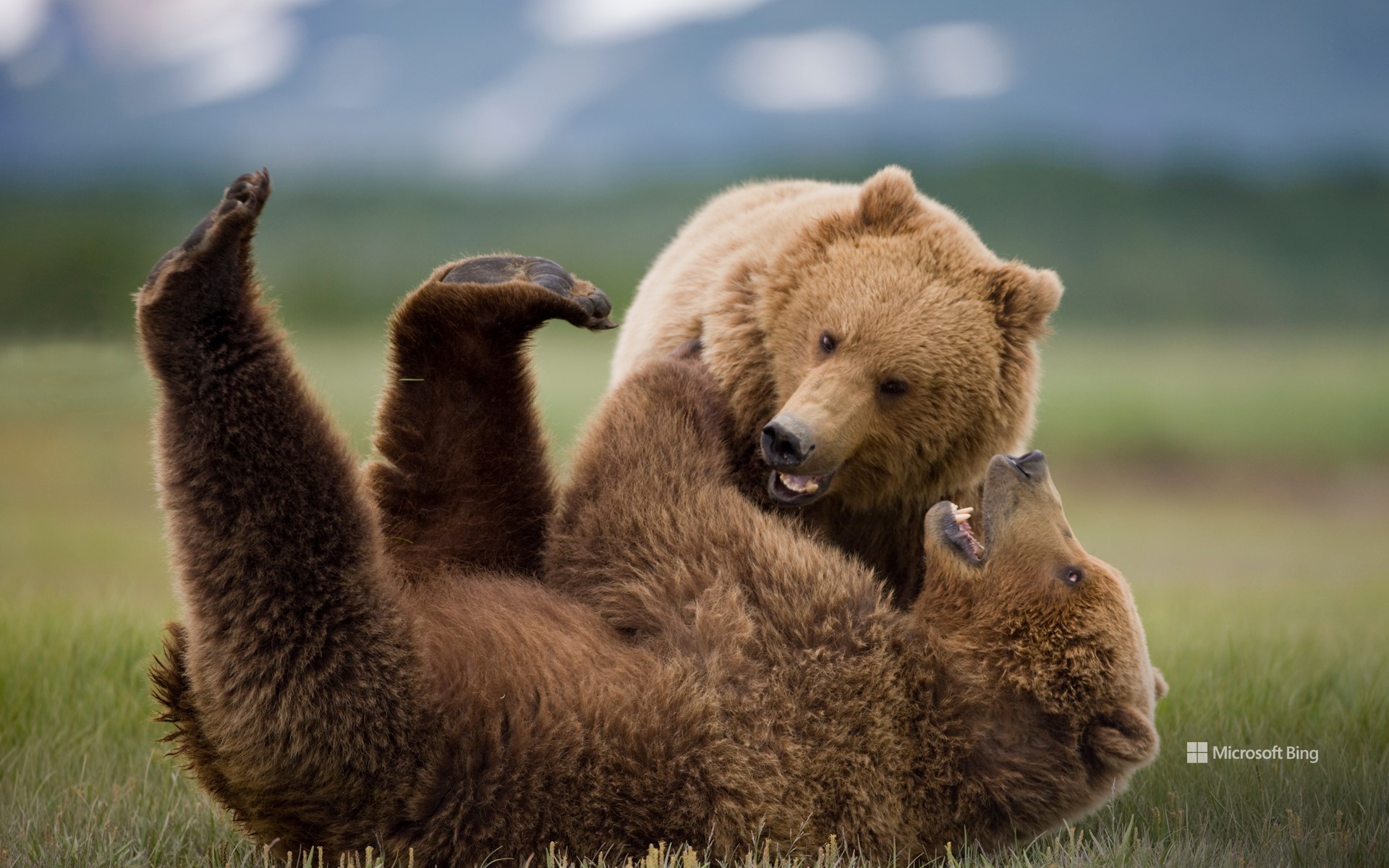 今天图片中正在进行摔跤角逐的是力量型选手——灰熊。年轻的灰熊常常通过“嬉戏打斗”来增强体力、磨练技能并建立社会联系。这些重量级冠军体重可达900磅,但仍能以每小时35英里的速度疾驰,比大多数人类跑得更快。在中国主要分布在新疆、青藏高原和东北山林地区。灰熊广泛分布于北半球各大陆,包括北美洲、亚洲与欧洲的北部。在中国主要分布在新疆、青藏高原和东北山林地区。