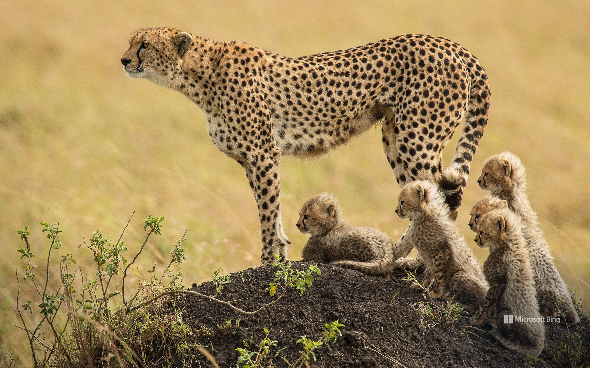 Eine Geparde-Mutter und ihre Jungen im Masai Mara Naturschutzgebiet, Kenia (© Scott Davis/Tandem Stills + Motion)