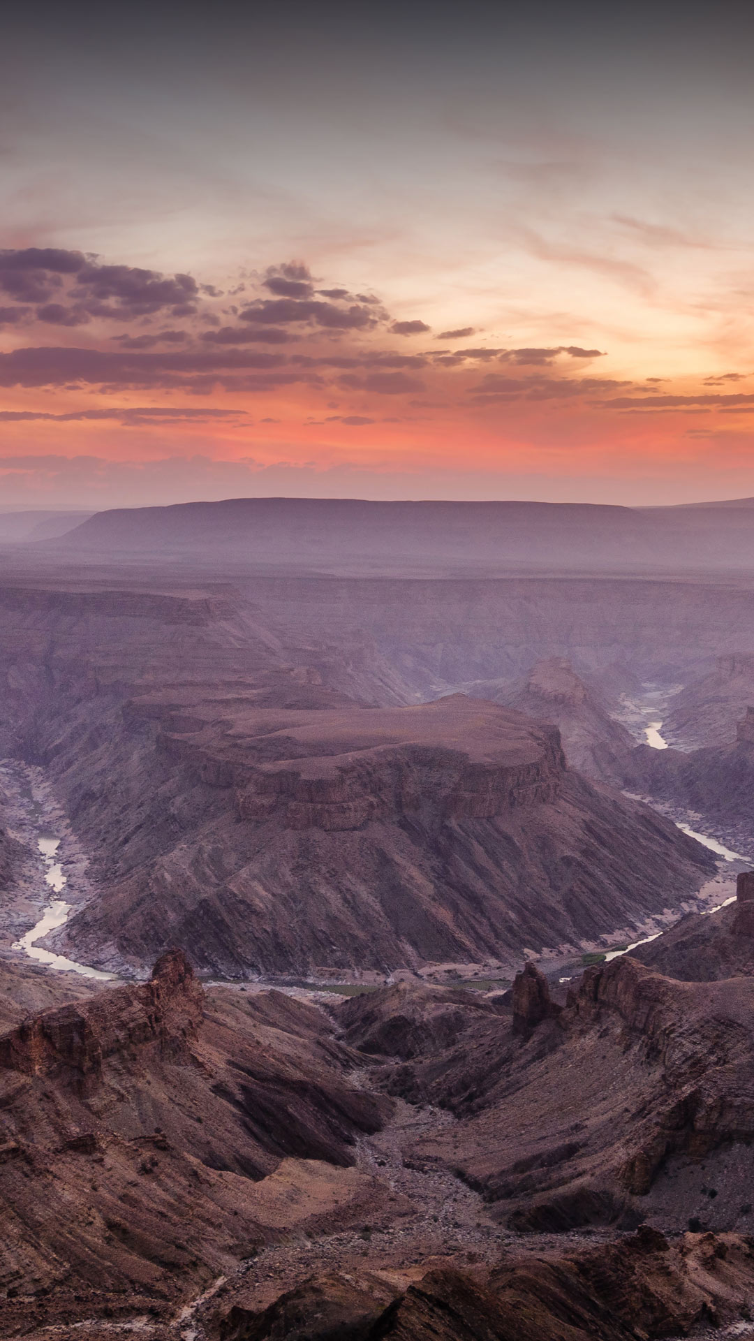 In Namibia haben Sie die Qual der Wahl. Vom tropischen Regenwald über die Wüste bis hin zu diesem spektakulären Canyon. Die Namib-Wüste ist eine der wenigen Küstenwüsten der Welt und der größte Fluss des Landes - der Fischfluss - hat im Laufe von Jahrmillionen den größten Canyon des afrikanischen Kontinents gegraben. Es ist der Fischfluss-Canyon, der sich rund 160 Kilometer durch verwittertes Gneis- und Dolomitgestein schlängelt und fast 600 Meter tief ist.