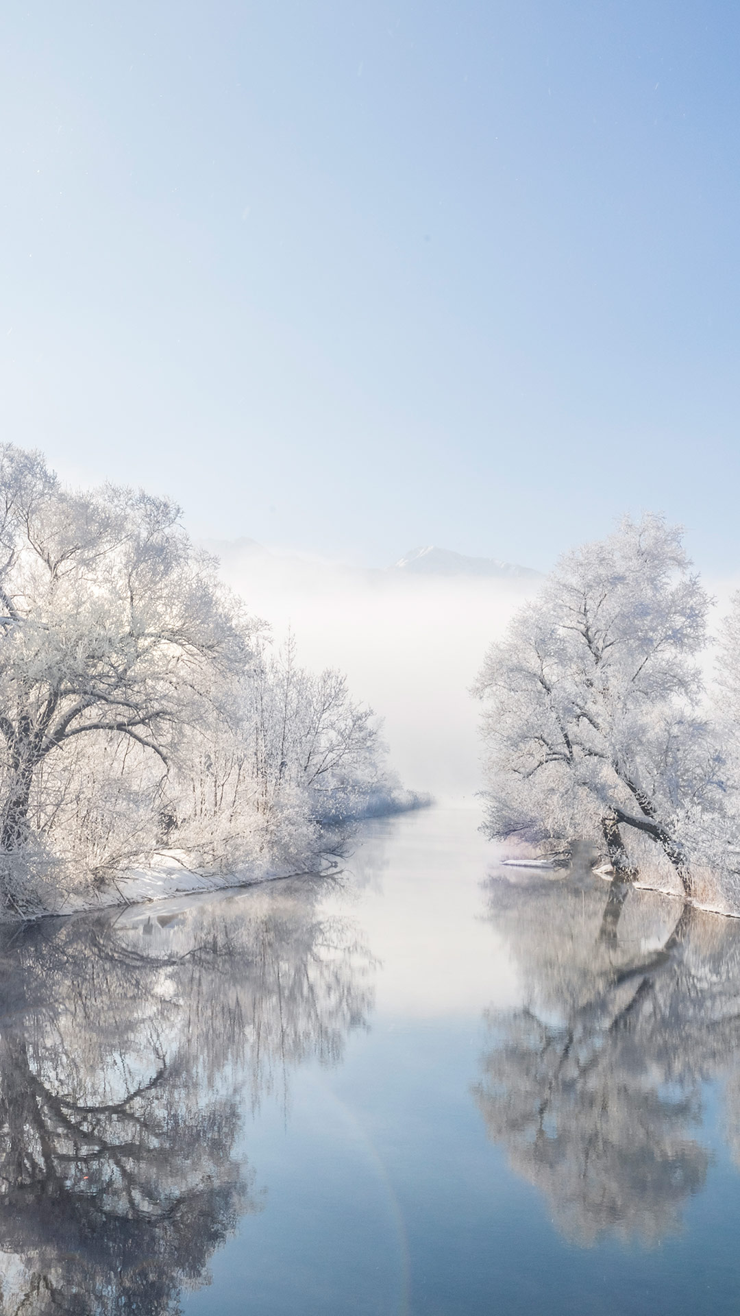 Frostbedeckte Bäume entlang des Flusses Loisach, Kochelsee, Bayern (© Malorny/Getty Images)